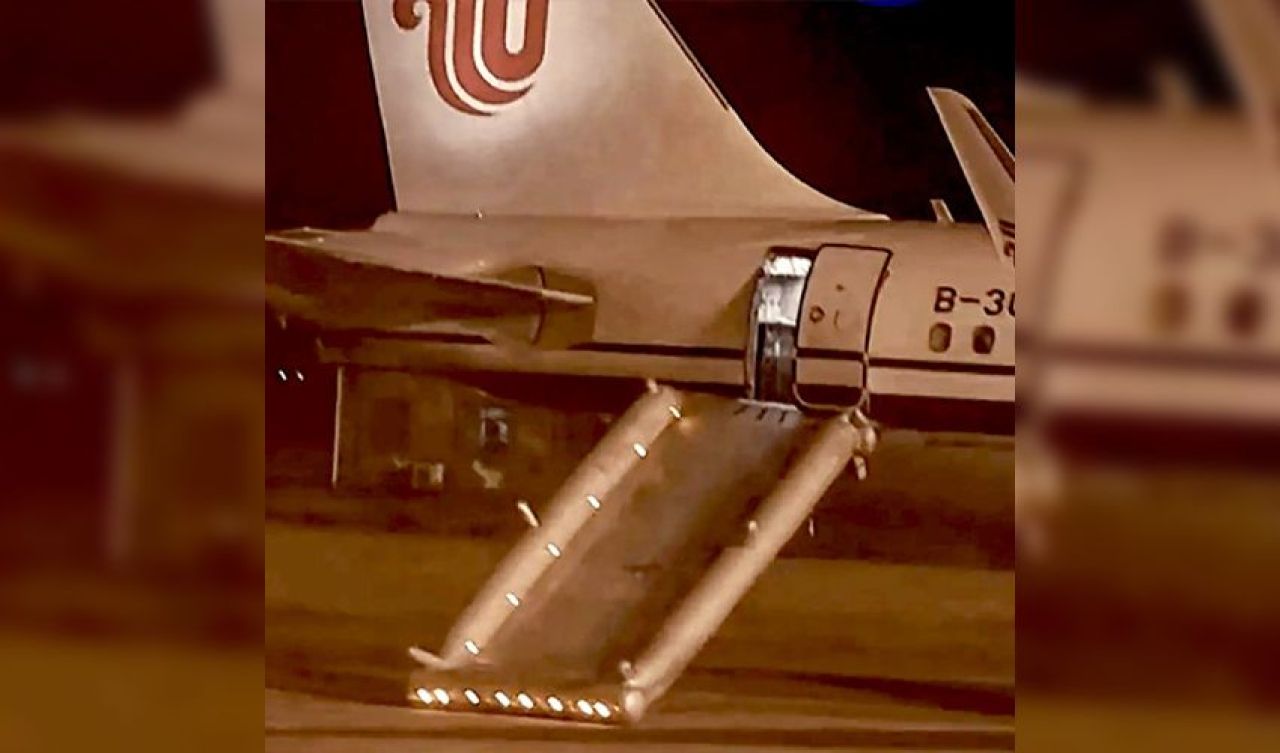 Çin sosyal medyasında dolaşan bir fotoğraf, uçağın kaydırak yerindeyken pistin ortasına park ettiğini gösteriyordu.