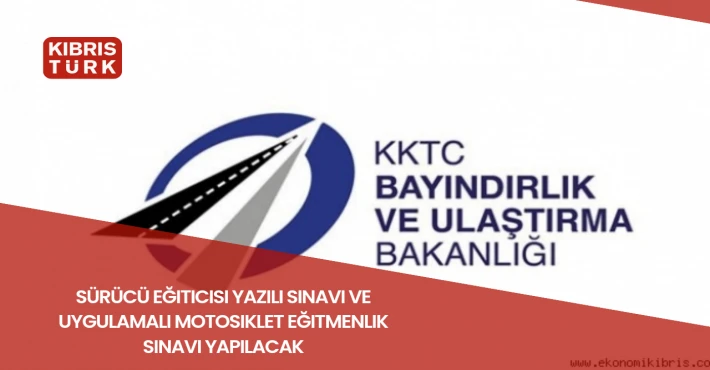 Trafik Dairesi Sürücü Eğiticisi Sınav Komisyonu Başkanlığı’ndan yapılan açıklamaya göre, Sürücü Eğiticisi Yazılı Sınavı ve Uygulamalı Motosiklet Eğitmenlik Sınavı başvuruları, 19 Temmuz Cuma günü mesai bitimine kadar Bayındırlık ve Ulaştırma Bakanlığı Trafik Dairesi Müdürlüğü Lefkoşa adresine şahsen yapılacak. Dilekçe ile yapılacak müracaata eklenmesi gereken belgeler şunlar: