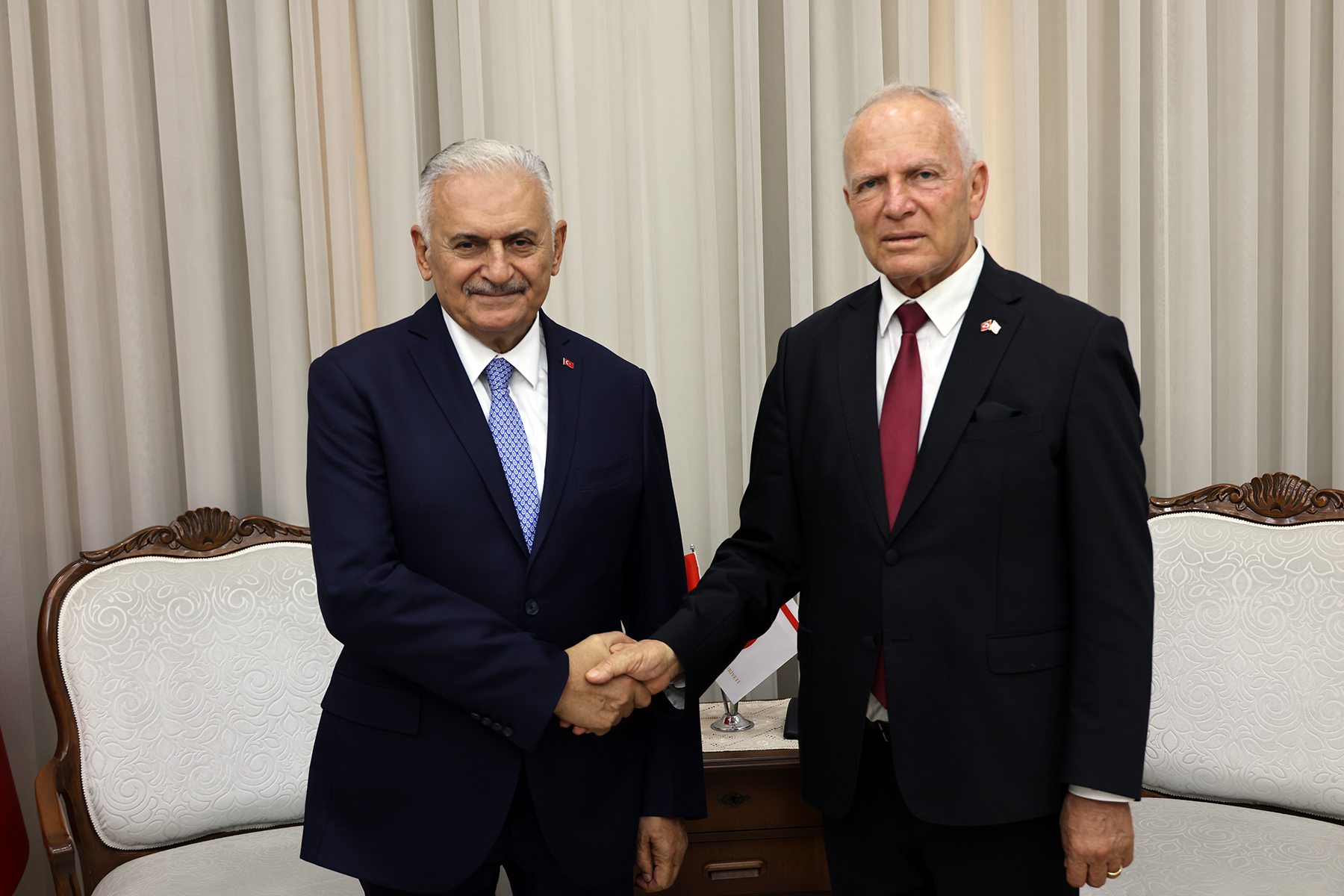 Cumhuriyet Meclisi Başkanı Zorlu Töre, Kıbrıs Barış Harekâtı’nın 50. yıl dönümü kutlamaları kapsamında KKTC’de bulunan AK Parti Genel Başkan Vekili, eski TBMM Başkanlarından ve Türkiye Başbakanlardan Binali Yıldırım’ı kabul etti.