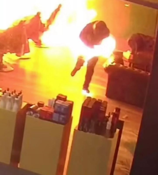 Olaylar, acemi kundakçının yakıta batırılmış bir bezi tutuşturmaya çalışmasıyla kontrolden çıktı. Çakmağı çakarken yanlışlıkla büyük bir yangın çıkaran suçlu, bir anda kendini ve dükkânı alevler içinde buldu. Panik içinde kalan ateşli suçlu, geldiği yoldan, yani kırdığı camlardan atlayarak dışarı kaçtı.