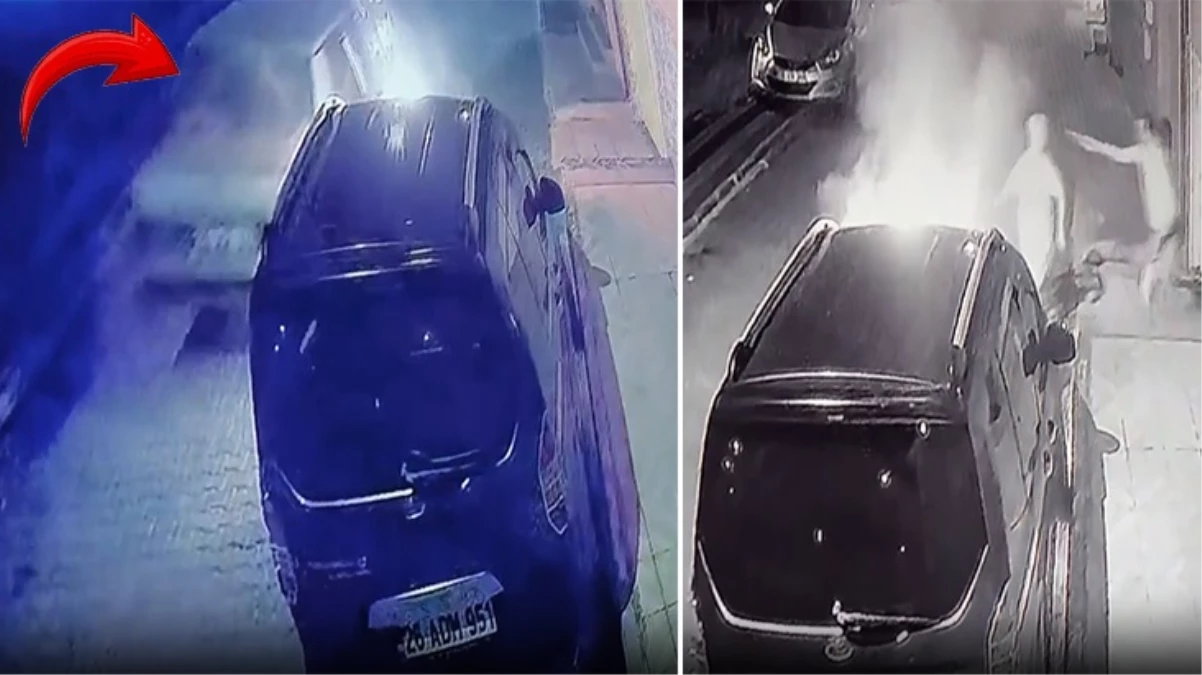 Güvenlik kameralarına anbean yansıyan olayda şüpheli şahıslar, olay yerine geldikleri otomobilin camından hafif ticari aracın kaput kısmına benzin dökerek ateşe verdi. Çıkan yangın büyümeden vatandaşlar tarafından söndürüldü.