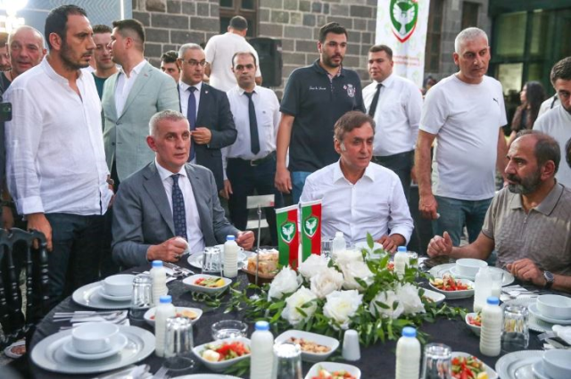 TFF Başkanı Hacıosmanoğlu, Amedspor’un yemeğinde! DEM’li başkanlara hediyesi geceye damga vurdu