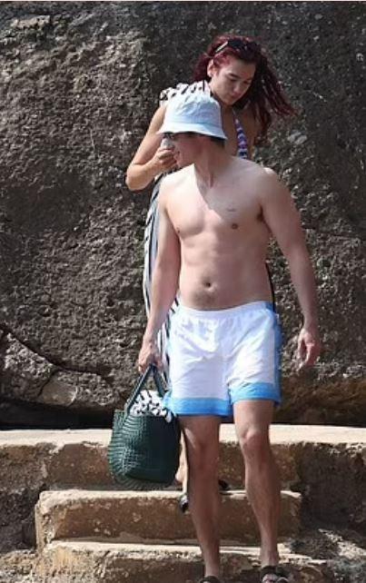 Daha sonra çift, güneşlenme yerlerinden ayrılırken Callum çantaları taşıyarak önden ilerledi. Dua, siyah-beyaz çizgili plaj havlusu ve siyah bir eteğe sarınmış, kızıl saçları doğal bir şekilde omuzlarına dökülmüştü.