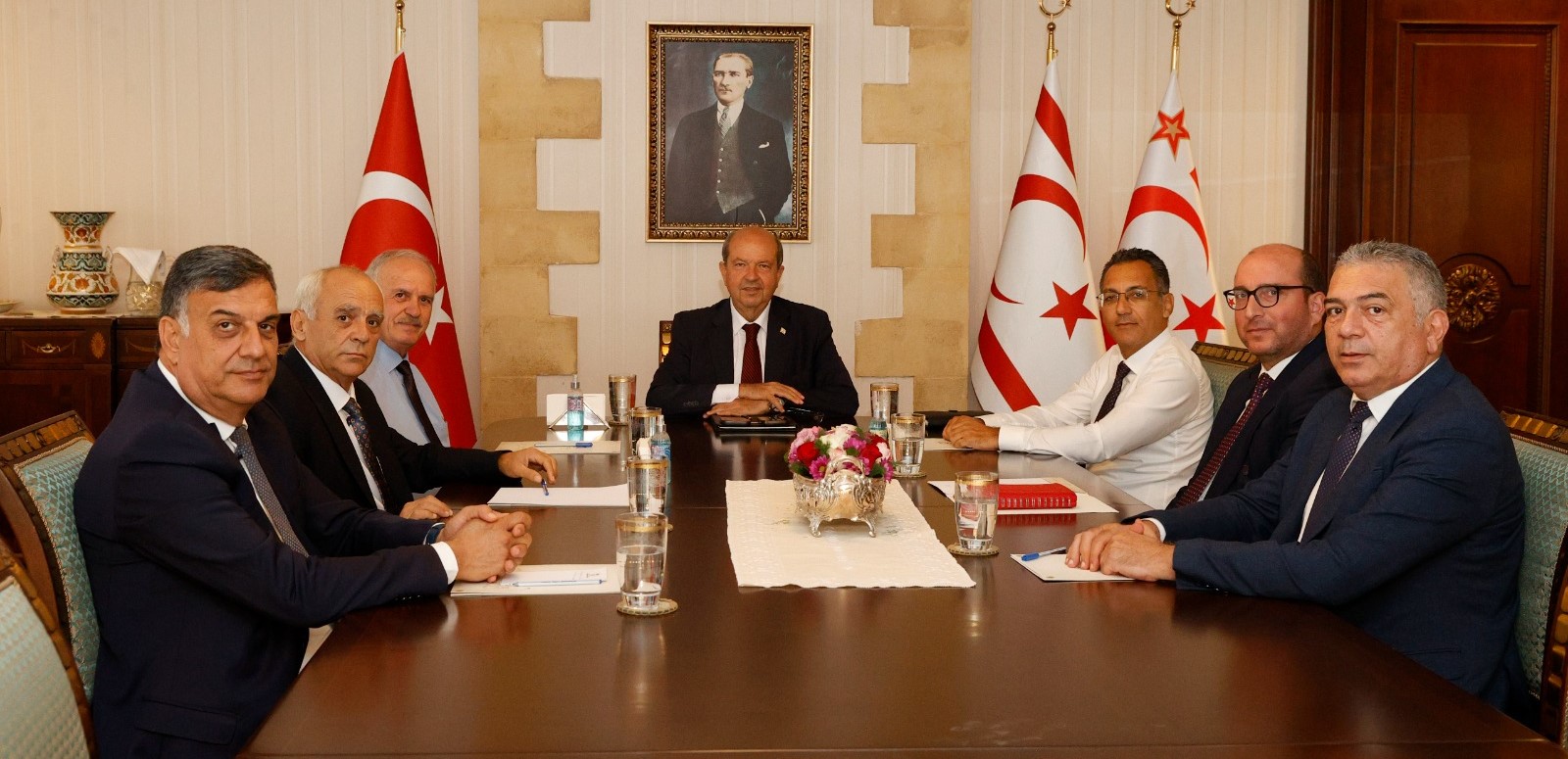 Cumhurbaşkanı Ersin Tatar, KIB-TEK Genel Müdürü Dalman Aydın ve KIB-TEK Yönetim Kurulu Başkanı Hüseyin Paşa ile görüştü.