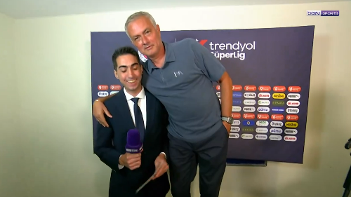 Maç önü yayıncı kuruluşa röportaj vermek için alana gelen Portekizli hoca bir anda orada bulunan tabureyi alarak üzerine çıktı ve yayıncı kuruluş muhabirine sarılarak poz verdi.