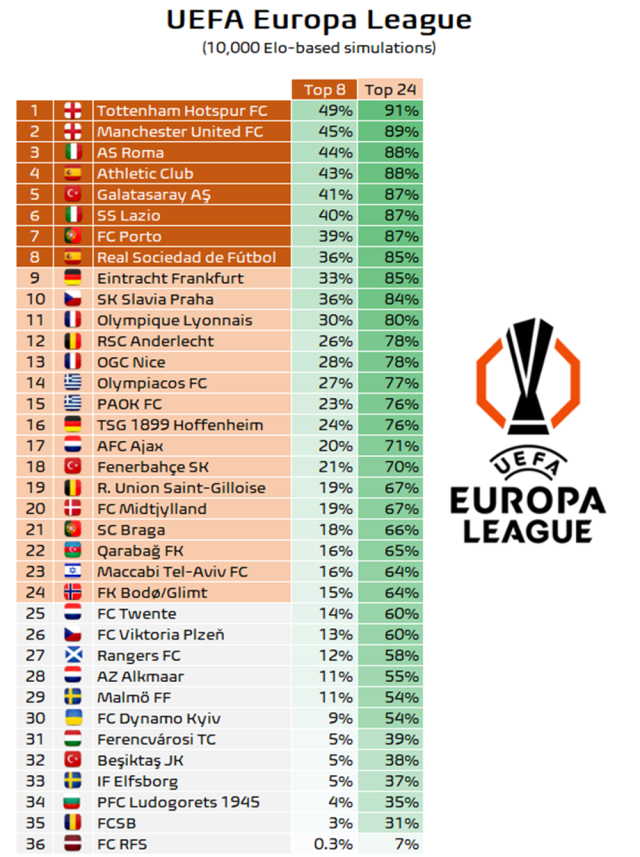 Football Meets Data, UEFA Avrupa Ligi’nde her takımın oynayacağı 8 maçlık ilk etabın ardından oluşacak sıralamayı simüle etti.