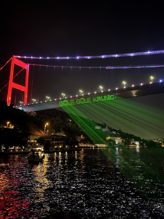 Krunic’in takımdan ayrılmasını büyük bir sevinçle karşılayan bir Fenerbahçe taraftarı, 15 Temmuz Şehitler Köprüsü’ne lazer gösterisi ile ‘Güle güle Krunic’ yazdırdı. Bu görüntüler, Fenerbahçeli taraftarların büyük ilgi gördü.