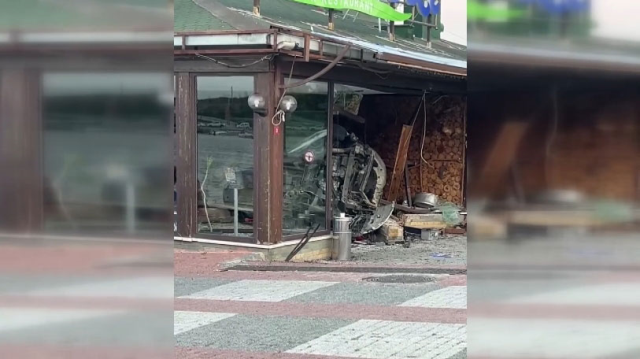 İstanbul Arnavutköy’de yokuş aşağı inerken direksiyon hakimiyetini kaybeden sürücü önce park halindeki araçlara çarptı, sonra bir balıkçı restoranına daldı. 4 kişinin yaralandığı kaza güvenlik kamerasına anbean kaydedildi.
