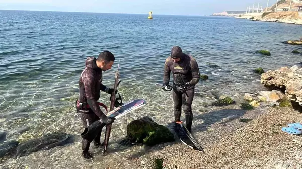 Kocaeli’nin Gebze kıyılarında denize açılan dalgıçlar, zıpkınla 2.5 metre uzunluğunda 320 kilogram ağırlığında nadir görülen mavi yüzgeçli orkinos avladı.