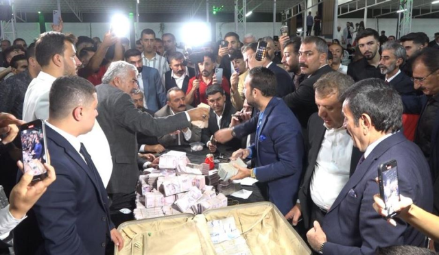 2 ton etli yemeğin dağıtıldığı düğün törenine aşiret liderleri, kanaat önderleri, STK başkanları, iş adamları ve çok sayıda davetli katıldı. 4 saat süren ve yaklaşık 20 kişinin saydığı takı töreninin sonunda damada 15 milyon TL, geline ise 2 kilo altın takıldı. Toplanılan paralar bavullara konularak taşınırken, takı töreninin ardından yüzlerce kişi halay çekti.