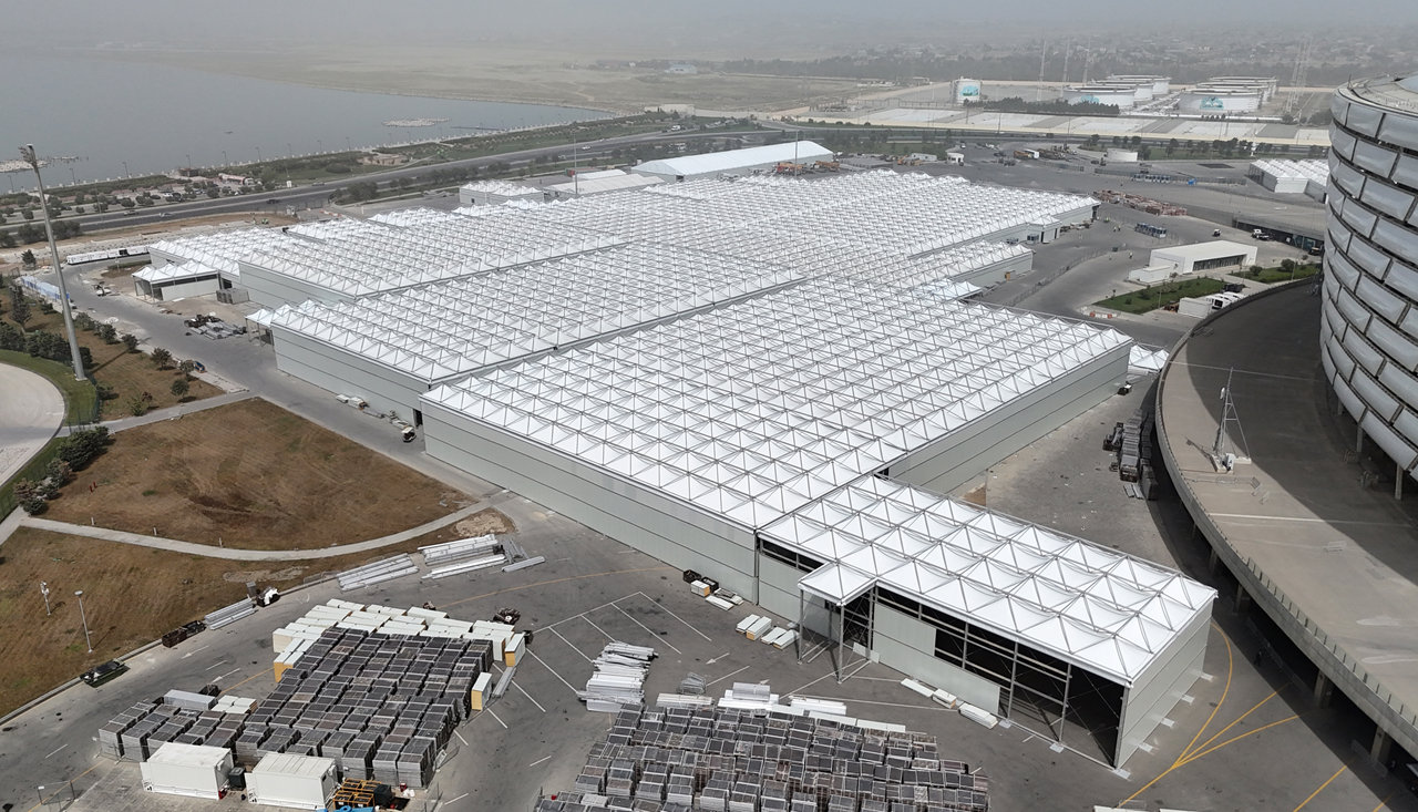 11-22 Kasım tarihlerinde Bakü’de düzenlenecek COP 29 nedeniyle, şehirde geçici prefabrik yapılar ve çadırlar kuruluyor. İnşa edilen alanlar iki kısımdan oluşuyor. Mavi Bölge olarak nitelendirilen ve COP 29 döneminde BM’nin yetkisinde olacak 49 hektarlık alanda toplam 110 bin metrekarelik prefabrik yapılar ve çadırlar yer alacak.