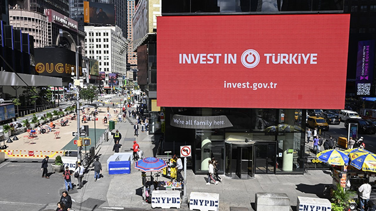 Bu kapsamda, Cumhurbaşkanlığı Yatırım Ofisi’nin “Invest in Türkiye” ve dünyanın bağlantı noktası anlamına gelen “Nexus of the World” mesajları, New York’un dünyaca ünlü Times Meydanı’ndaki dijital panolarda yayımlandı.