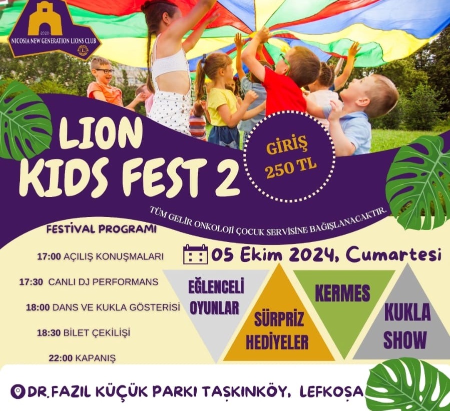 “2. Lion Kids Fest,” Cumartesi günü Lefkoşa Taşkınköy’deki Dr. Fazıl Küçük Parkı’nda düzenlenecek.