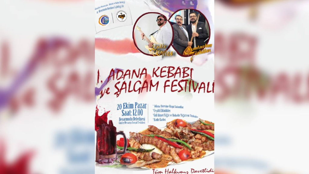 KKTC Adanalılar Derneği’nin (ADAKDER), Beyarmudu Belediyesi katkısıyla düzenleyeceği 1’inci Adana Kebabı ve Şalgam Festivali 20 Ekim Pazar günü Beyarmudu Belediyesi Güney Mesarya Sosyal Tesisleri’nde saat 12.00’de başlayacak.