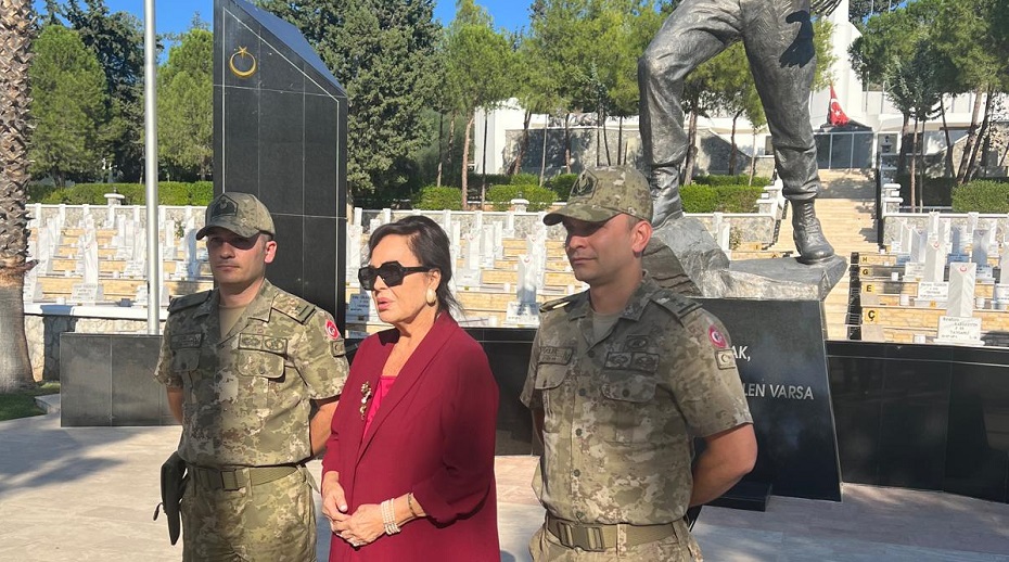Ünlü sanatçı Türkan Şoray, Kıbrıs Şehitlerini Anma Platformu Başkanı Hasan Taş ile birlikte Boğaz Şehitliği’ni ziyaret etti.