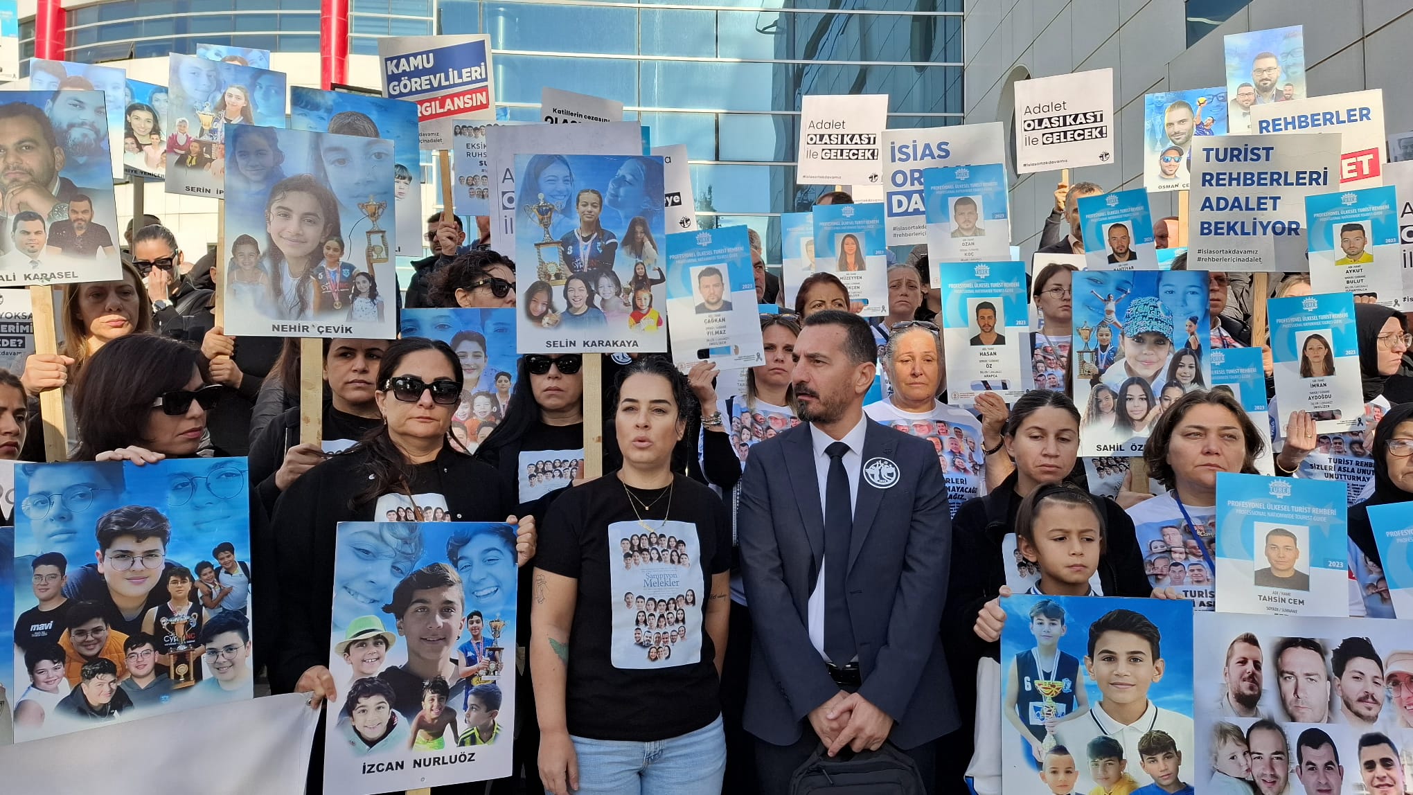 Türkiye’de 6 Şubat 2023’te meydana gelen depremde, Adıyaman İsas Otel’de hayatını kaybeden Şampiyon Melekler ve tur rehberleri ile 10 yaralının aileleri dava öncesinde mahkeme önünde toplanarak bir önceki davalarda olduğu gibi depremde kaybettikleri canlarının fotoğraflarını girişe sıraladı.