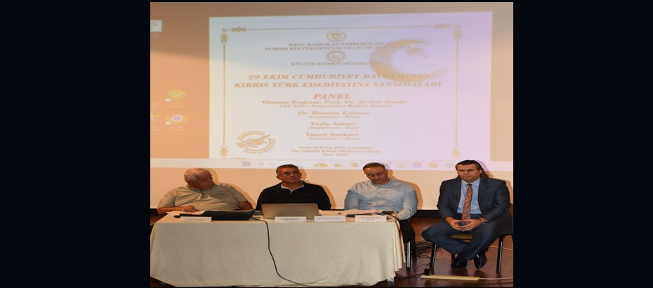 Kültür Dairesi ile Yakın Doğu Üniversitesi Kıbrıs Araştırmaları Merkezi, 29 Ekim Cumhuriyet Bayramı’nın Kıbrıs Türk Edebiyatına Yansımaları konulu panel düzenledi.