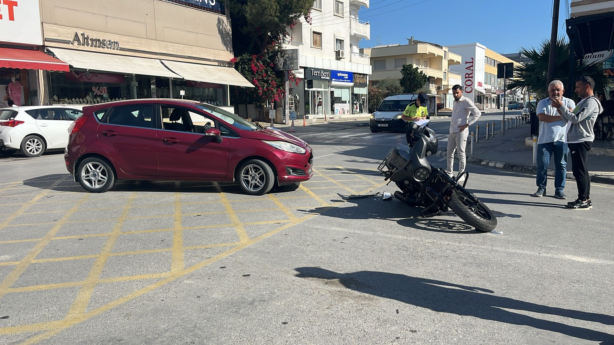 Polisten verilen bilgiye göre, saat 10.00 sıralarında, Lefkoşa’da Şht Kemal Ünal Caddesi boyunca MJ 519 plakalı salon aracı doğu istikametine doğru kullanan Aldulğani Can (E-30) seyretmekte olduğu yolun sağında bulunan Romana Cafe önlerine geldiğinde karşıdan gelip düz gitmekte olan araçlara öncelik hakkı vermeden dikkatsiz bir şekilde sağa dönüşe geçtiği esnada karşı istikametten soldan birinci şerit içerisinden batı istikametine doğru seyreden Gürhan Çakın (E-57) yönetimindeki YK 950 plakalı motosikletin sağ yan kısmına aracının ön kısmı ile çarptı.