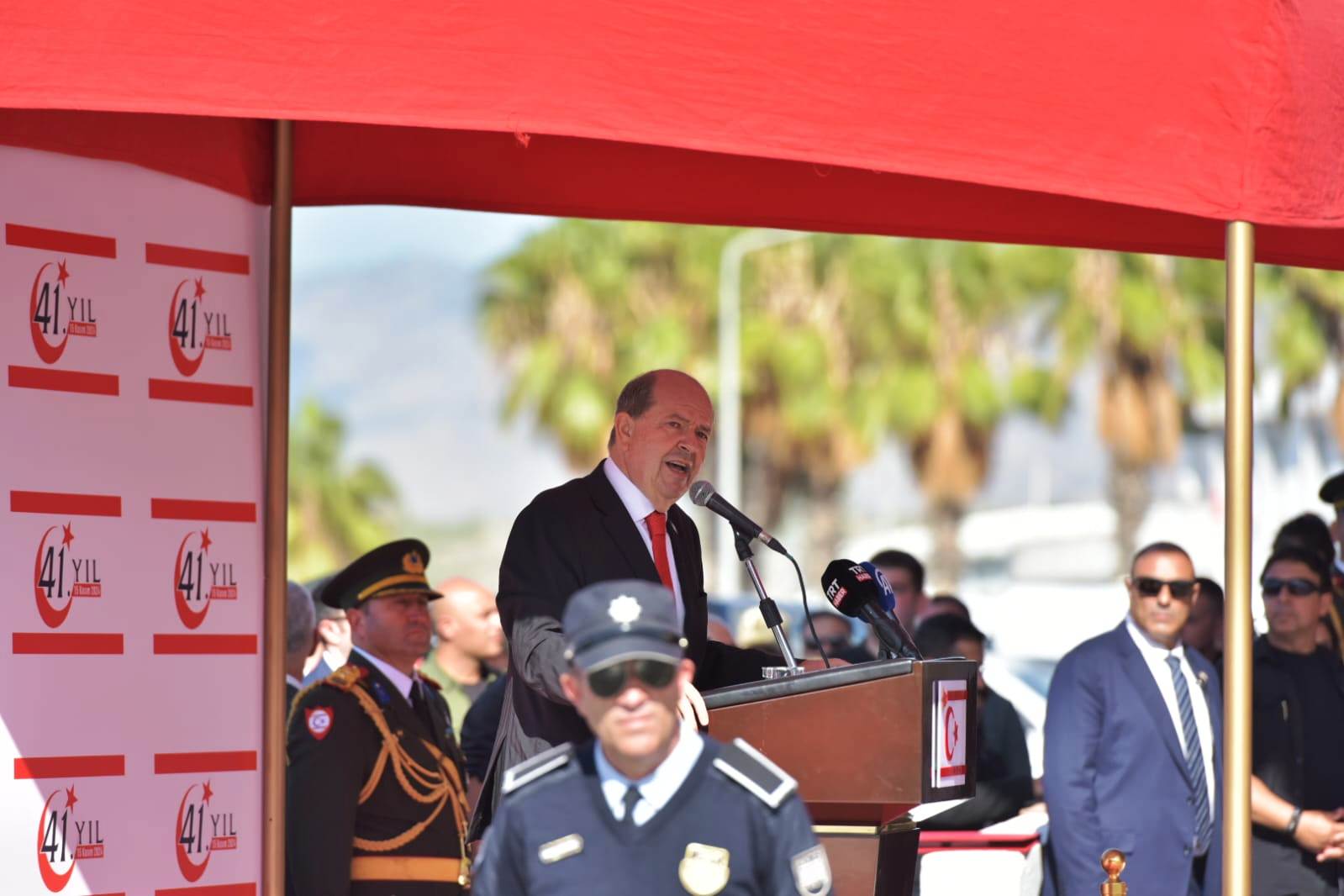 TC Cumhurbaşkanı Yardımcısı Cevdet Yılmaz ise, konuşmasında, adada ve dünyanın yer yerinde yaşayan Kıbrıs Türklerinin 15 Kasım Cumhuriyet Bayramı’nı kutladı, Türkiye Cumhuriyeti Cumhurbaşkanı Recep Tayyip Erdoğan ve Türkiye halkının selamlarını iletti.
