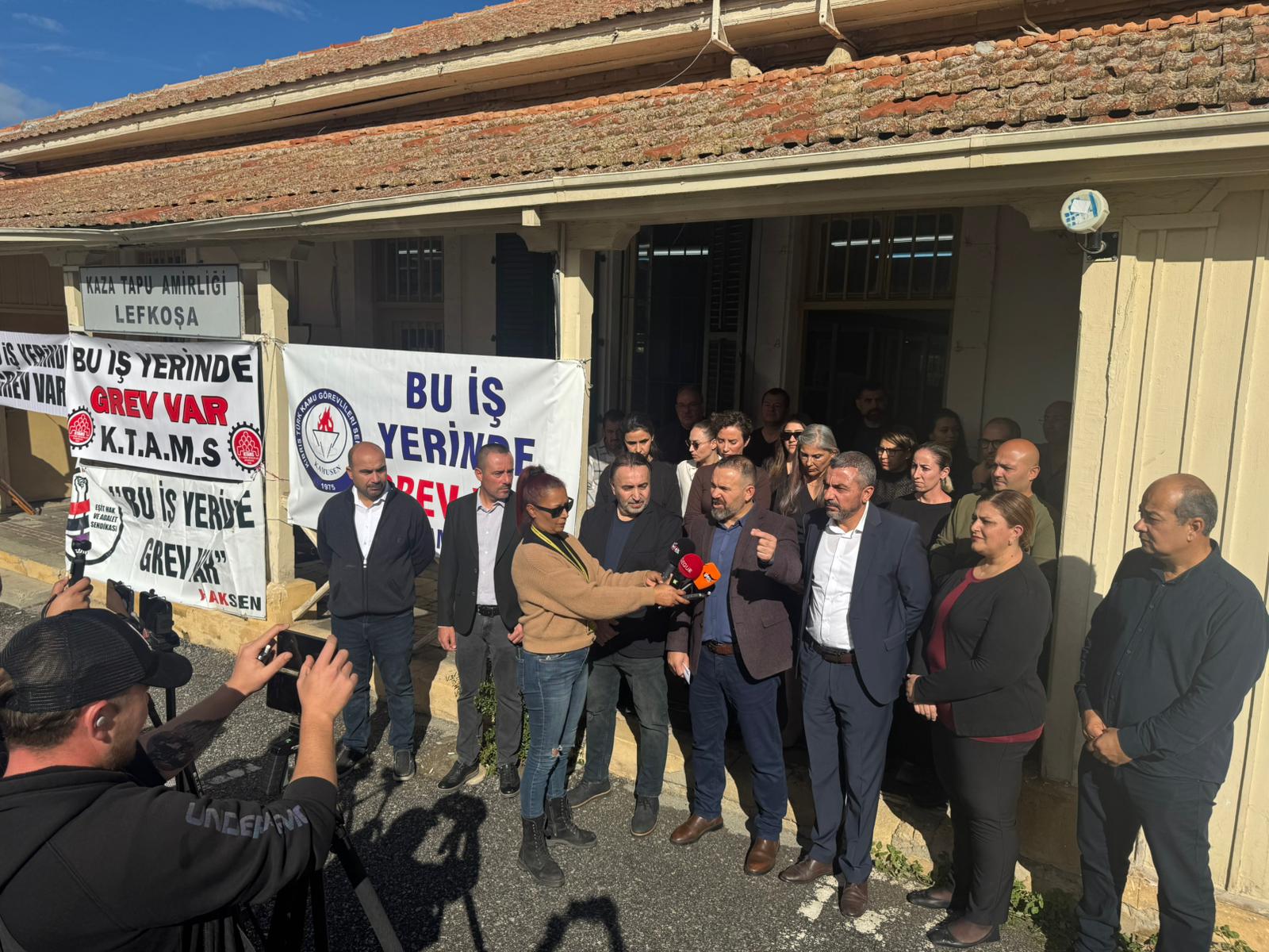 Kıbrıs Türk Amme Memurları Sendikası (KTAMS), Kıbrıs Türk Kamu Görevlileri Sendikası (KAMUSEN), Kamu İşçileri Sendikası (KAMU-İŞ) ve Eşit Hak ve Adalet Sendikası (HAKSEN) personel eksikliği, bina sorunları ve araç gereç eksiklikleriyle ilgili sorunların giderilememesi gerekçesiyle bugün Lefkoşa Kaza Tapu Amirliği’nde bir günlük greve gitti.