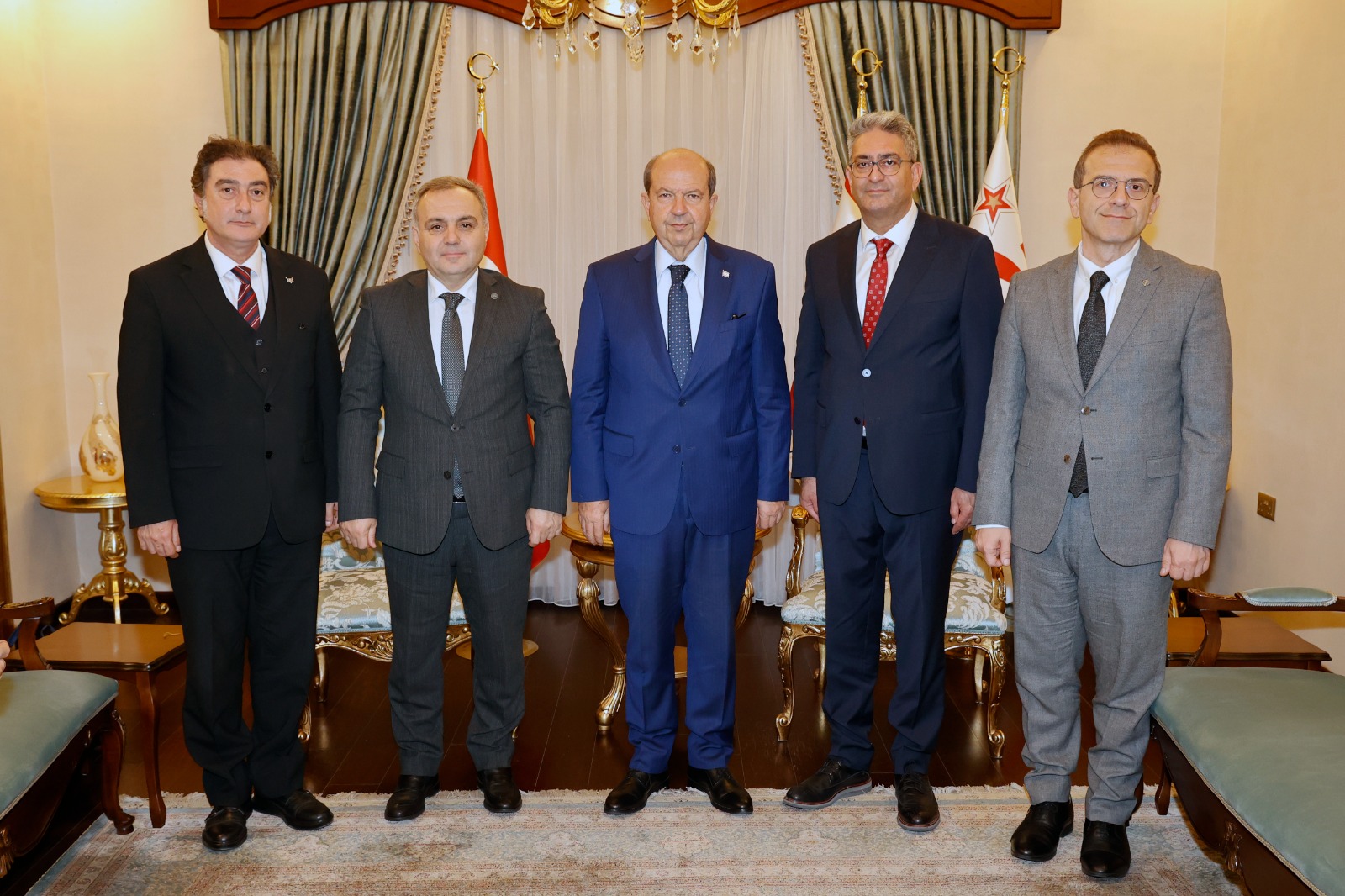 Cumhurbaşkanı Ersin Tatar, Kayseri Erciyes Üniversitesi Rektörü Prof. Dr. Fatih Altun ve beraberindeki heyeti kabul etti.