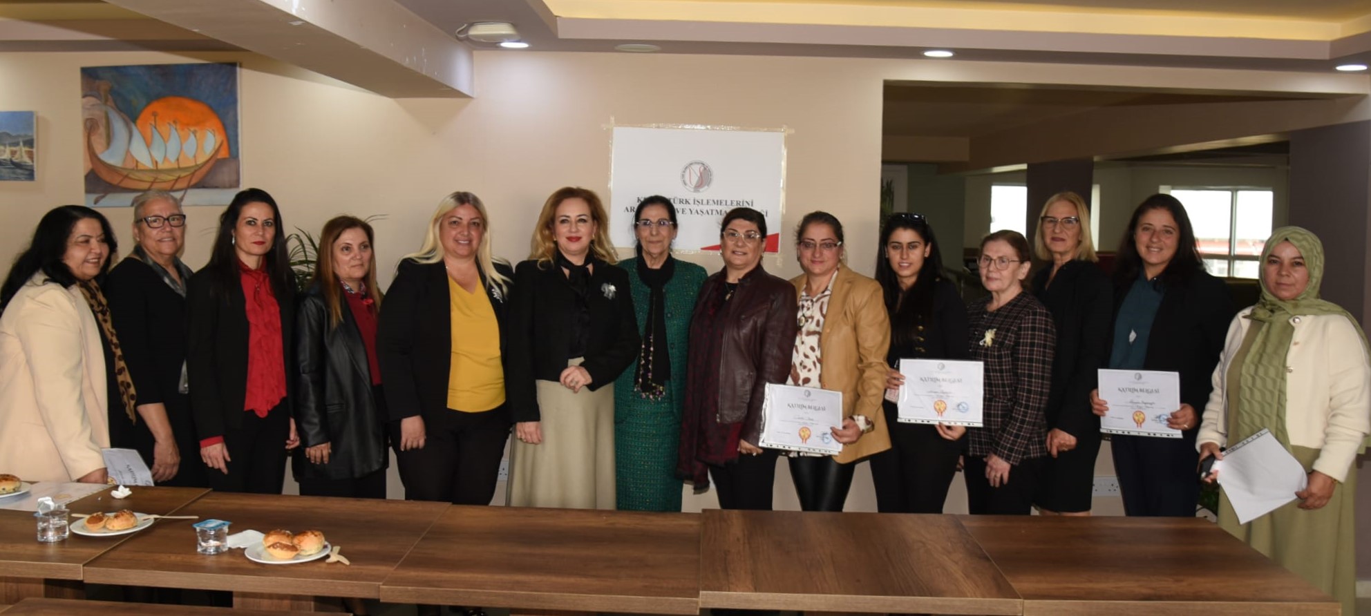 Lefkoşa Ramona Cafe’de bugün düzenlenen sertifika takdim etkinliğine Cumhurbaşkanı Ersin Tatar’ın eşi Sibel Tatar, Mehmetçik-Büyükkonuk Belediye Başkanı Fatma Çimen Tuğlu, Kıbrıs Türk İşlemelerini Araştırma ve Yaşatma Derneği Başkanı Dervişe Çeliker, öğretmenler ve kursiyerler katıldı.