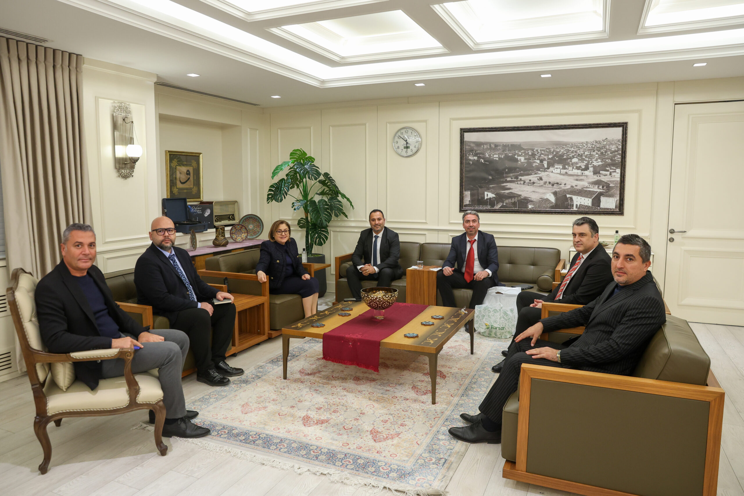 Kıbrıs Türk Spor Yazarları Derneği (KTSYD), Başkanı Necati Özsoy ve Genel Sekreter Hüseyin Köprülü, Gaziantep Büyükşehir Belediye Başkanı Fatma Şahin ve KKTC Gaziantep Konsolosu Kerem İzmen’i ziyaret etti