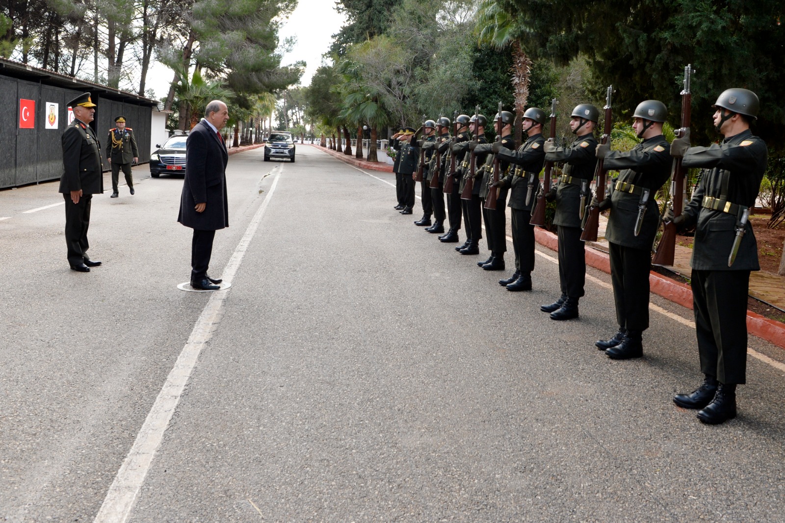 Cumhurbaşkanı Ersin Tatar, burada onur kıtası tarafından karşılandı.
