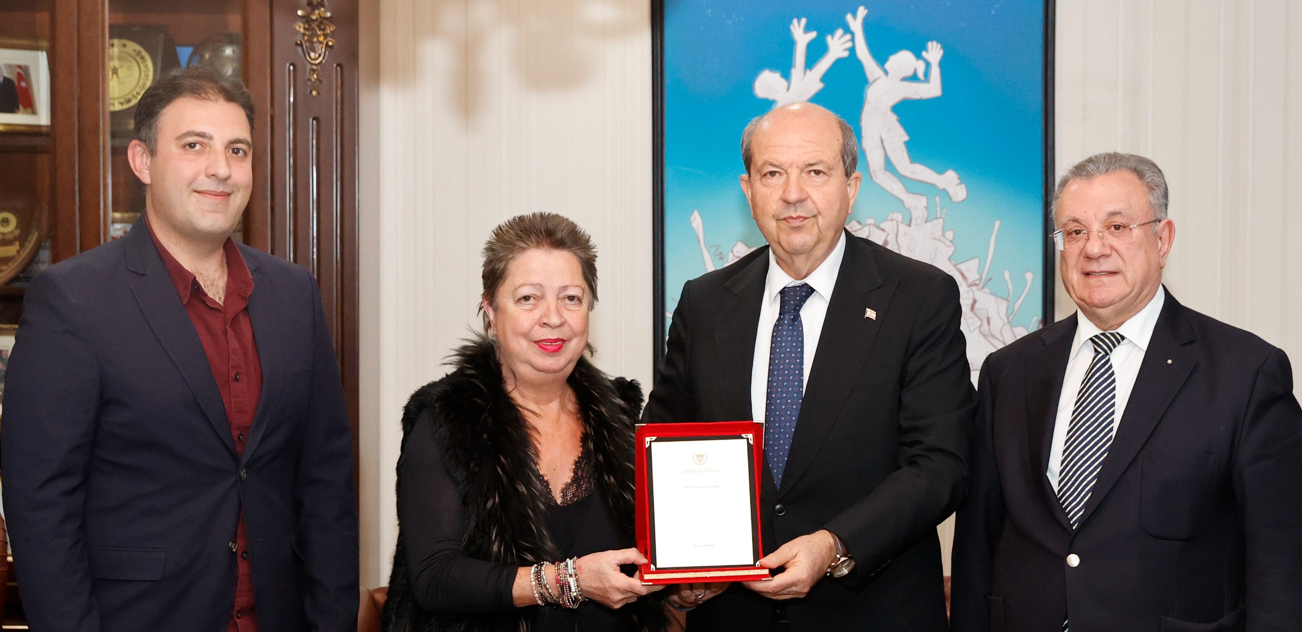Cumhurbaşkanı Ersin Tatar, yıllardan beridir Kayıp Şahıslar Komitesi’nin çalışmalarına yaptığı katkılardan dolayı gazeteci-yazar Sevgül Uludağ’a teşekkür plaketi takdim etti.