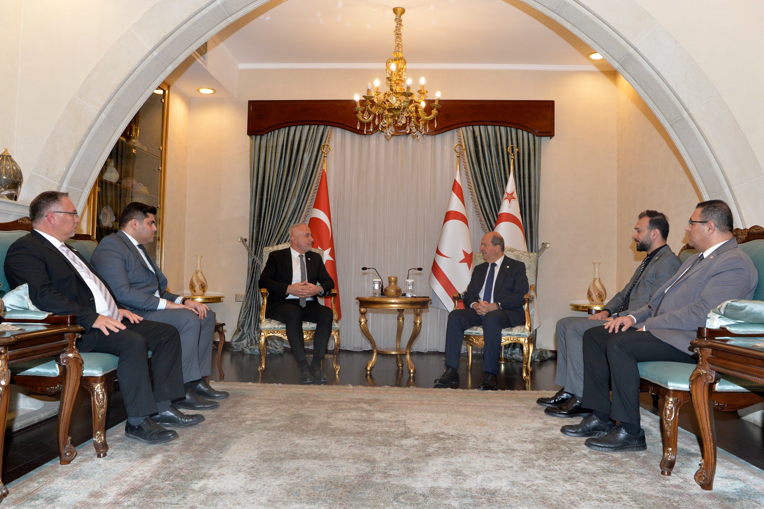 Cumhurbaşkanı Ersin Tatar Uluslararası Demokratlar Birlik Başkanı Yardımcısı Mehmet Sağanak ve beraberindeki heyeti kabul ederek, görüştü.