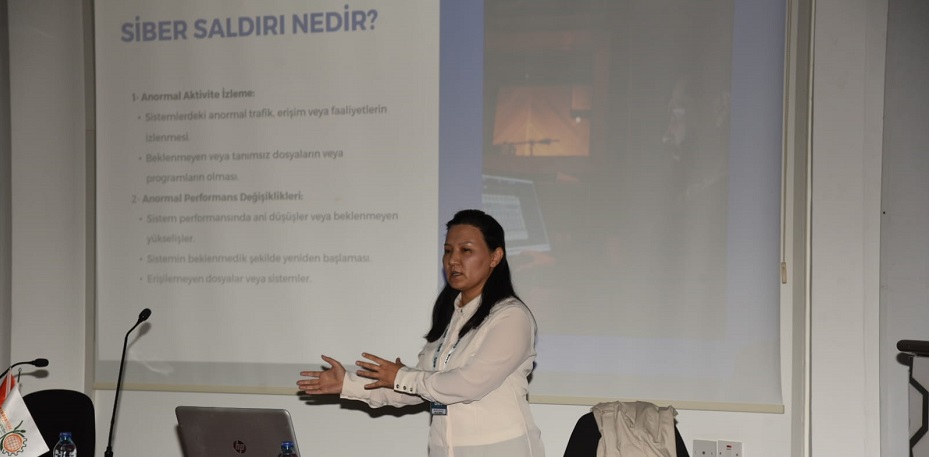 Gürhan’ın açılış konuşmasının ardından Yüksek Bilgisayar Mühendisi ve BMO Yön. Kur. Üyesi Medine Albayrak katılımcılara dijital güvenlik, siber-saldırılar, saldırı türleri, bu saldırılara karşı korunma konusunda bilgi verdi.