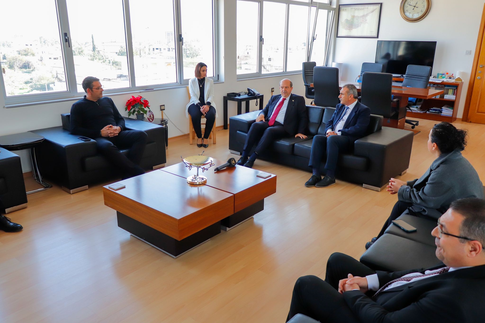 Cumhurbaşkanı Ersin Tatar, Gazimağusa Belediyesi’ni ziyaret etti ve Gazi Mağusa Belediye Başkanı Dr. Süleyman Uluçay ile görüştü.