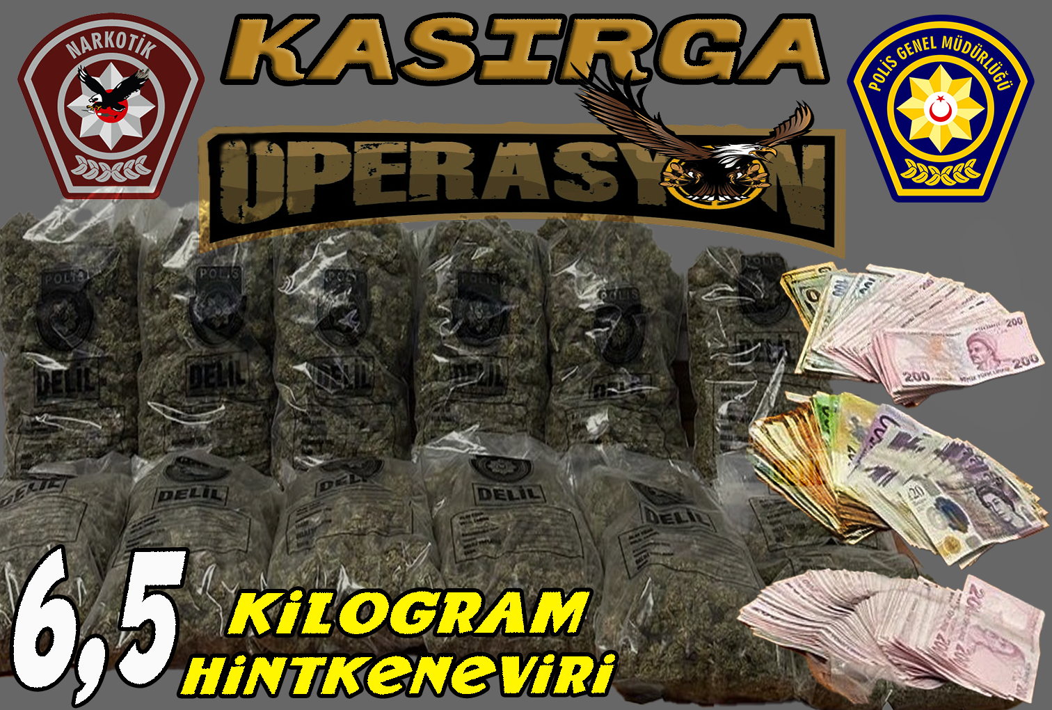 Karşıyaka’da, Narkotik ve Kaçakçılığı Önleme Müdürlüğü ekipleri tarafından dün 21.00 sıralarında düzenlenen “Kasırga Operasyonu”nda B.A. (E-30), M.A. (E-36) ve A.A.nın (E-31) tasarruflarında satışa hazır halde 6 kilo 330 gram hintkeneviri ile 5 gram kubar esrar ele geçirildi. Ayrıca operasyonda hassas terazi ile uyuşturucu madde satışından elde edildiğine inanılan 64 bin 85 TL, 540 ABD doları, 4 bin 675 euro ve 1560 sterlin nakit para da bulundu. Şahıslar tutuklandı, soruşturma devam ediyor.