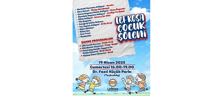 Lefkoşa Türk Belediyesi (LTB) tarafından 23 Nisan Ulusal Egemenlik ve Çocuk Bayramı kapsamında cumartesi günü 16.00 – 19.00 saatleri arasında Taşkınköy’de Dr. Fazıl Küçük Parkı’nda düzenlenecek şölende eğlenceli ve öğretici atölyeler olacak.