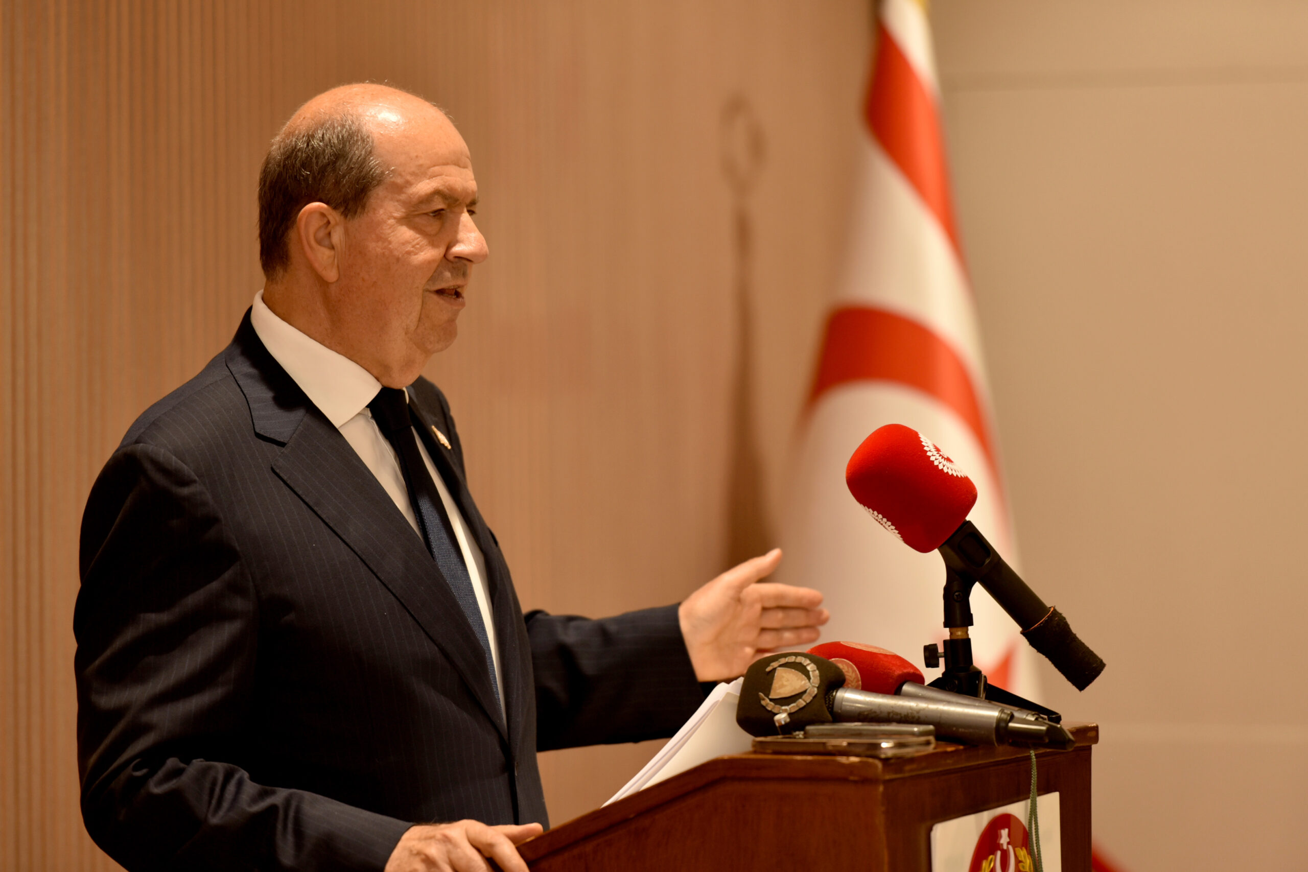 Tatar, konuşmasında 2020’de kazandığı Cumhurbaşkanlığı seçimi sonrası yürüttükleri iki devletli siyasete değinerek, ancak Kıbrıs Türk halkının egemen eşitliği ve eşit uluslararası statüsünün kabulüyle müzakere masasına dönülebileceğini, bunu ilk kez 2021’de Cenevre’de dile getirdiklerini anımsattı.