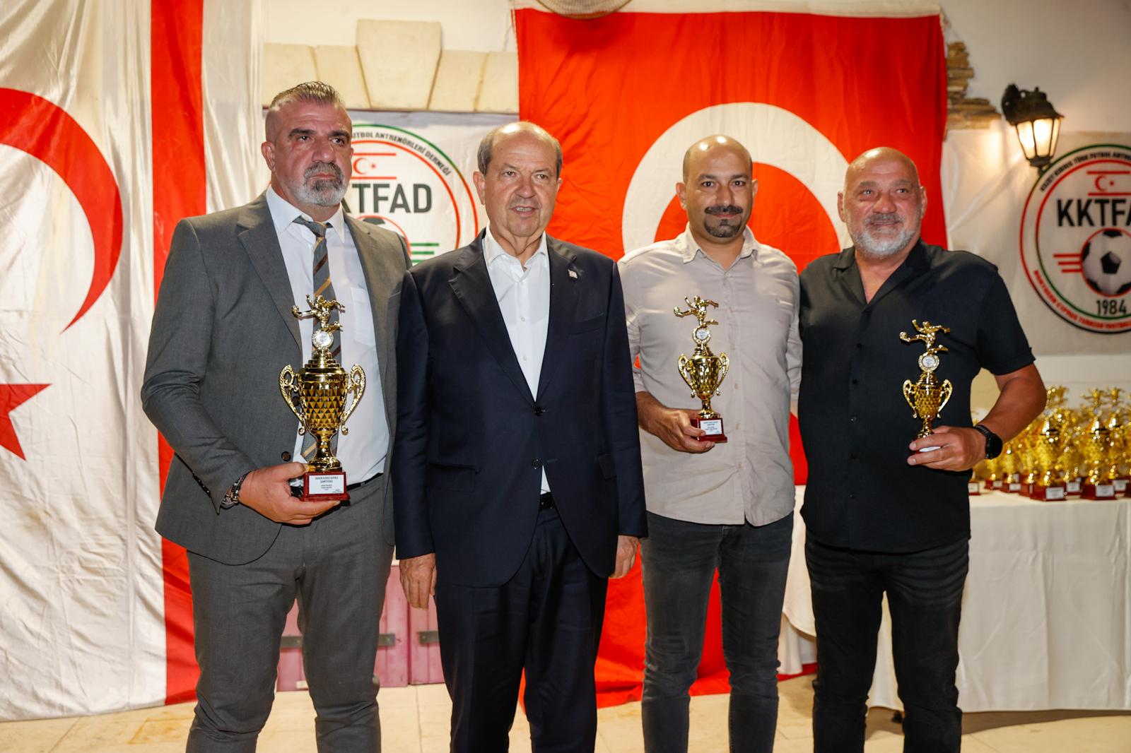 Cumhurbaşkanı Ersin Tatar, Kuzey Kıbrıs Türk Futbol Antrenörleri Derneği (KKTFAD) tarafından düzenlenen ödül törenine katıldı.