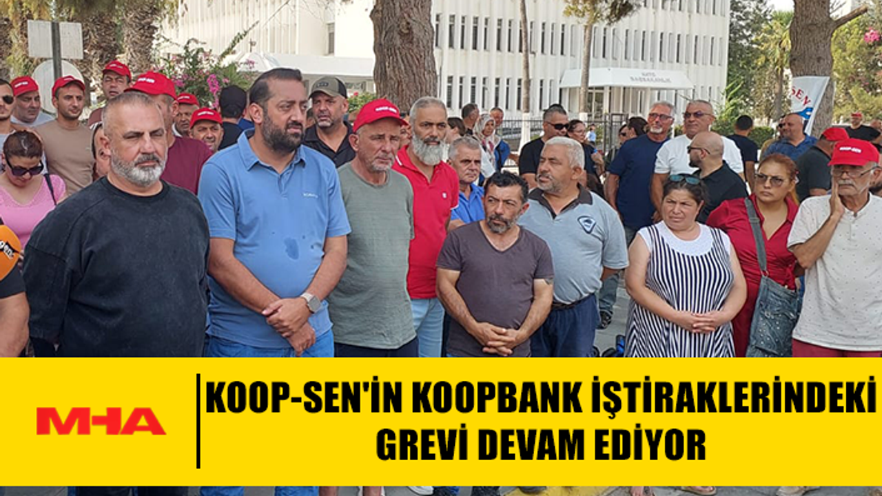 Koop-Sen, Kıbrıs Türk Kooperatif Merkez Bankası Ltd. iştiraklerinden Koop-Süt, Zirai Levazım Kooperatifi ve Binboğa Yem Kooperatifi’nde çalışanların temmuz ayı maaşlarının ödenmemesi gerekçesiyle başlatılan grev üçüncü gününde. Sendika yetkilileri ve çalışanlar, Kooperatif Merkez Bankası Genel Müdürlüğü önündeki eylemlerinin ardından dün Başbakanlık önüne taşıdıkları eylemi bugün de sürdürdü.