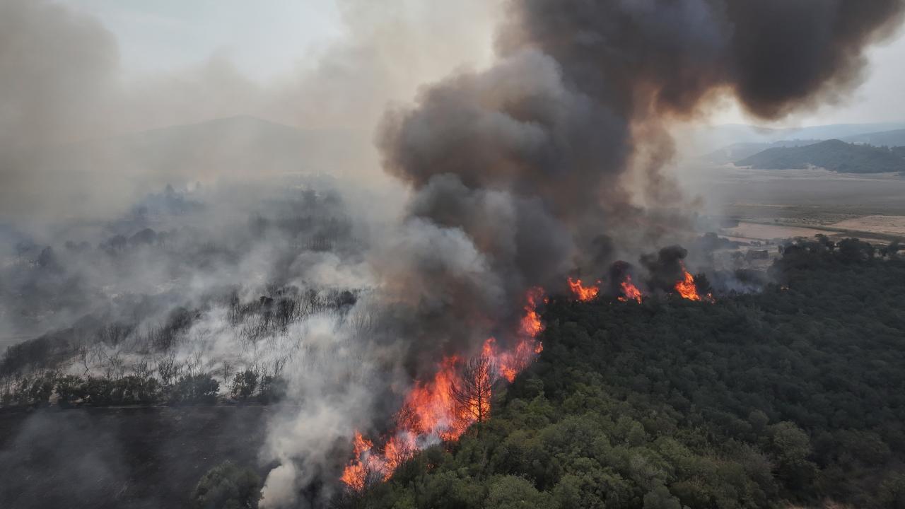 Orman yangınına 12 uçak, 18 helikopter, 343 kara aracı ve 1300 personelle müdahale ediliyor.