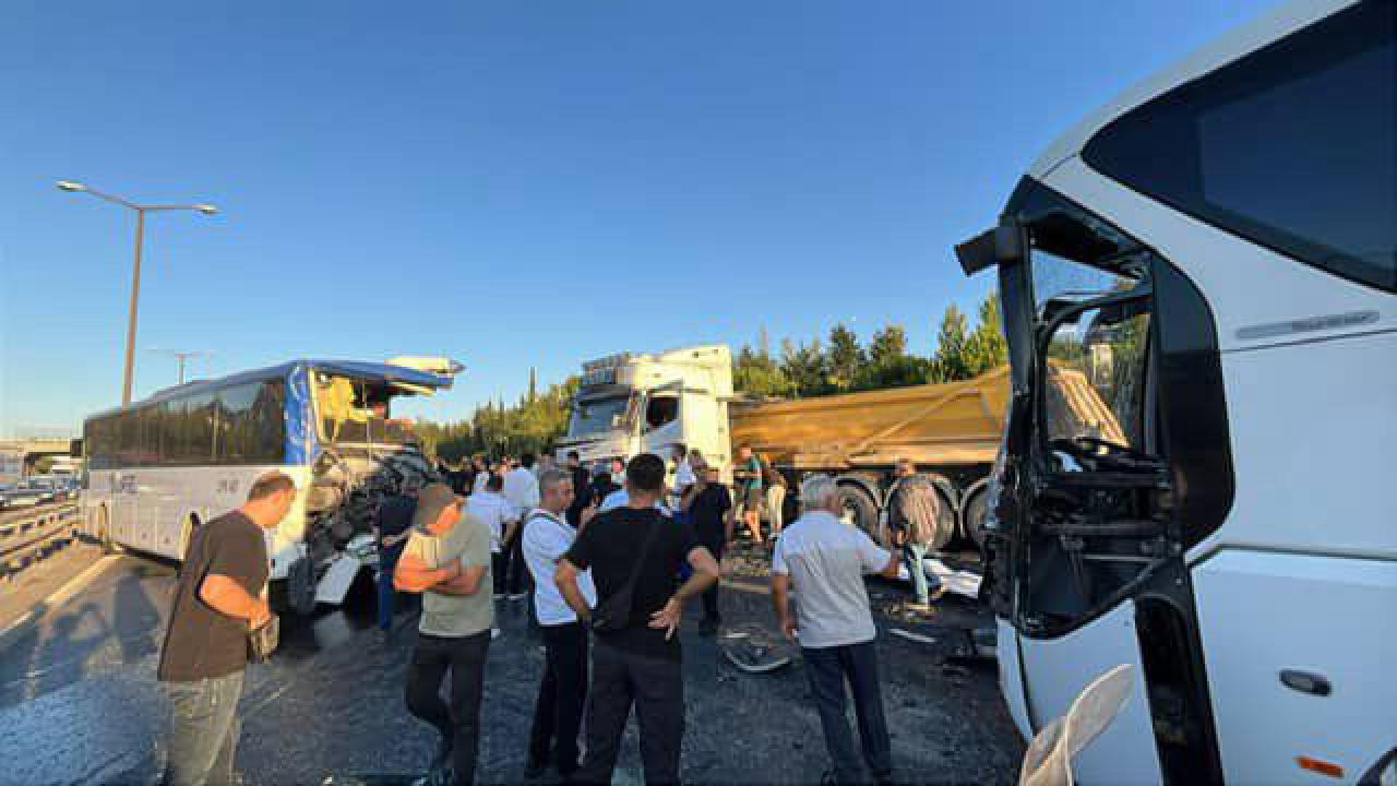 TEM Otoyolu’nun Edirne istikametinde otobüs ile hafriyat kamyonunun karıştığı zincirleme trafik kazası meydana geldi.