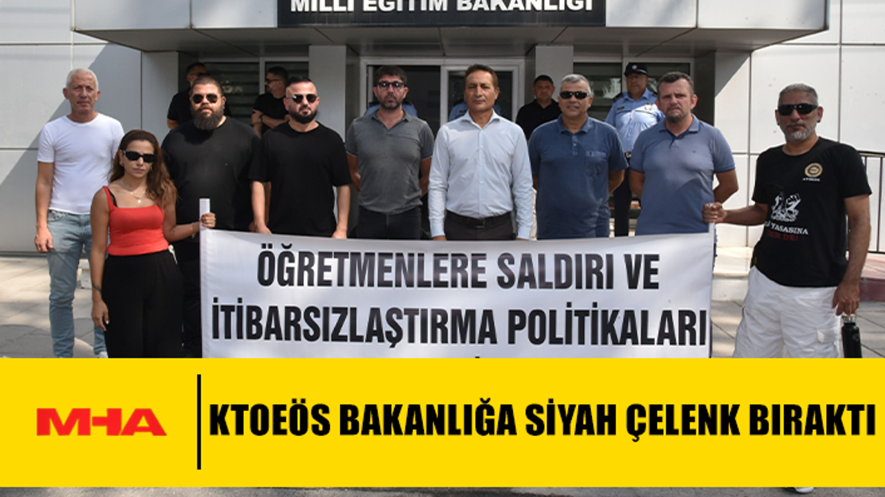 Üzerinde “Öğretmenlere saldırı ve itibarsızlaştırma politikaları kabul edilemez” yazılı pankart açarak Milli Eğitim Bakanlığı önünde basın açıklaması yapan KTOEÖS, Bakanlığa siyah çelenk bıraktı.