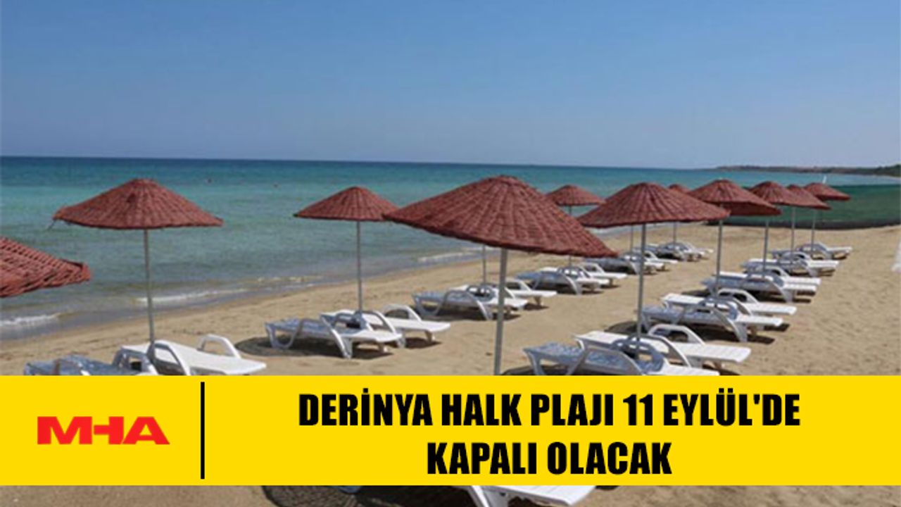 KıbrısManşetDERİNYA HALK PLAJI 11 EYLÜL'DE KAPALI OLACAKEylül 10, 2025 6:07 pm Derinya Halk Plajı, gerçekleştirilecek askeri tatbikat nedeniyle 11 Eylül 2025 Perşembe günü gün boyu halka kapalı olacak. Yetkililer, vatandaşların bu tarihte plajı kullanamayacağını belirterek, anlayışları için teşekkür etti.