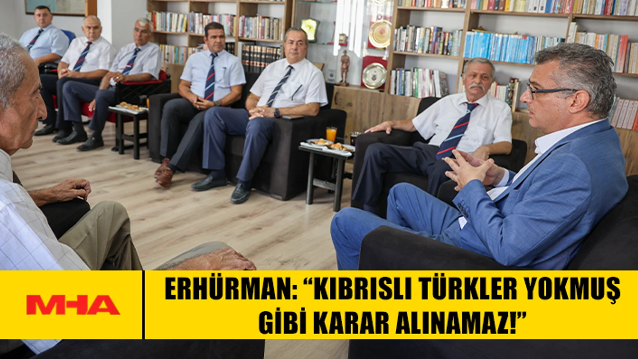 Kıbrıs Türk Emekli Subaylar Derneği’ne görüşmeden dolayı teşekkür eden Erhürman, “Geride bıraktığımız dönemde Kıbrıs Rum Liderliği, bu adanın tamamı ve Kıbrıs’ta yaşayan herkes adına egemenlik kullandı. Kıbrıslı Türkler bu adadaki iki eşit kurucu ortaktan biridir ve Kıbrıs Rum Liderliği tek başına böyle bir hakka sahip değildir. Bu adada güvenlikle, deniz yetki alanlarıyla, enerjiyle, hidrokarbonlarla, ticaret yollarıyla ilgili bir karar alınacaksa, Kıbrıs Rum Liderliği bizi yok sayarak, görmezden gelerek, biz yokmuşuz gibi davranarak tek başına bunu yapamaz.” dedi.
