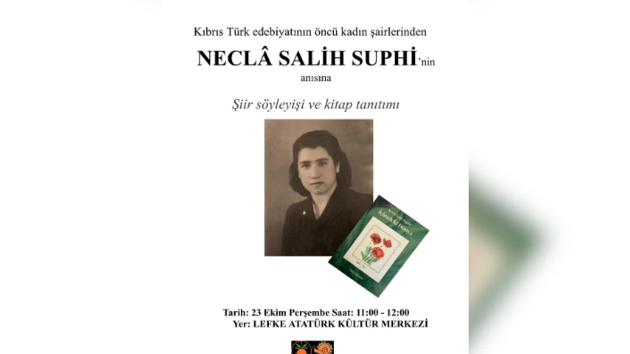 Lefke Belediyesi, Kıbrıs Türk edebiyatının öncü kadın şairlerinden Neclâ Salih Suphi anısına “Şiir Söyleyişi ve Kitap Tanıtımı” etkinliği düzenliyor.