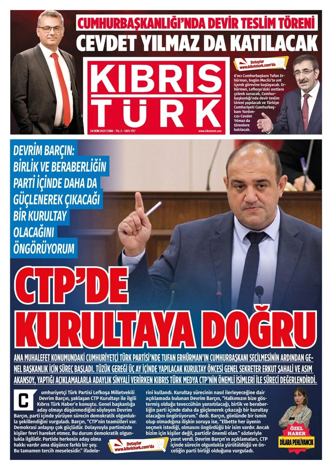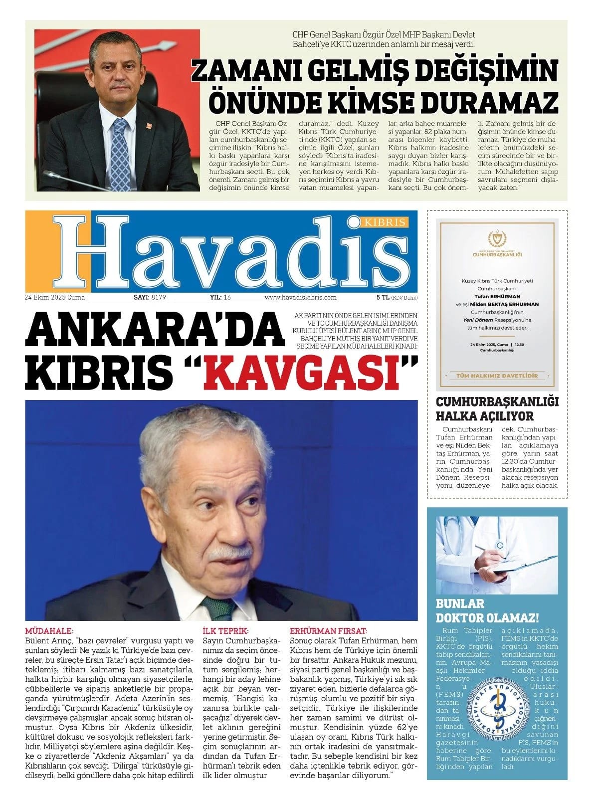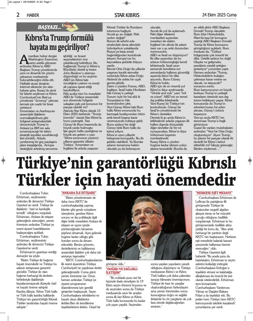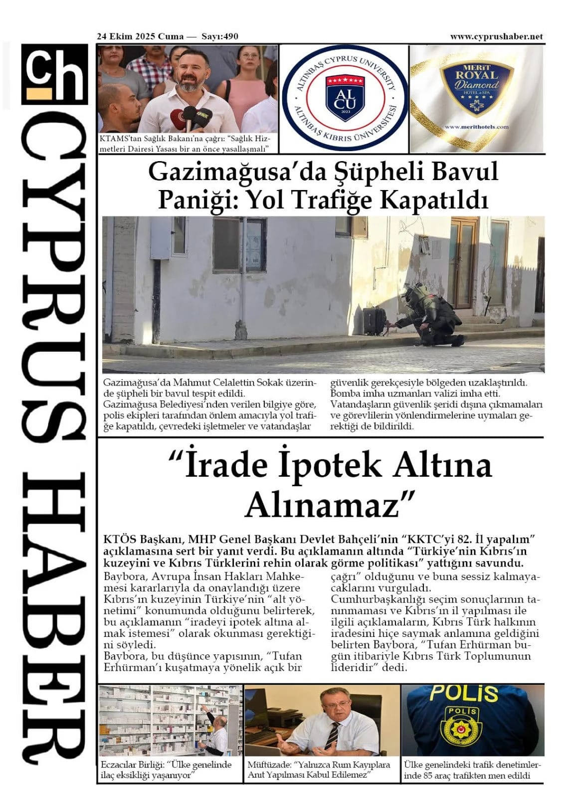 KıbrısGAZETE MANŞETLERİ (24 EKİM 2025)Ekim 24, 2025 9:35 am Paylaş İlgili haberler İLAHİYAT KOLEJİ PROTOKOLÜ'NE MECLİS'TEN ERTELEME Ekim 27, 2025 BAŞIBOŞ BIRAKLAN KÖPEK, YOLDAN GEÇEN KADINI ISIRDI Ekim 27, 2025 GİRNE’DE TRAFİK KAZASI: ALKOLLÜ SÜRÜCÜ TUTUKLANDI Ekim 27, 2025 Cevap bırakın Yanıtı iptal etE-posta adresiniz yayınlanmayacak. Gerekli alanlar * ile işaretlenmişlerdirYorumAd * E-posta * İnternet sitesi Daha sonraki yorumlarımda kullanılması için adım, e-posta adresim ve site adresim bu tarayıcıya kaydedilsin.