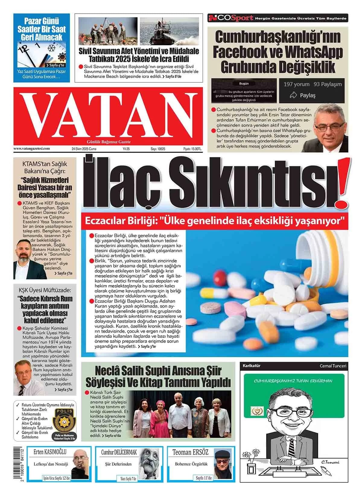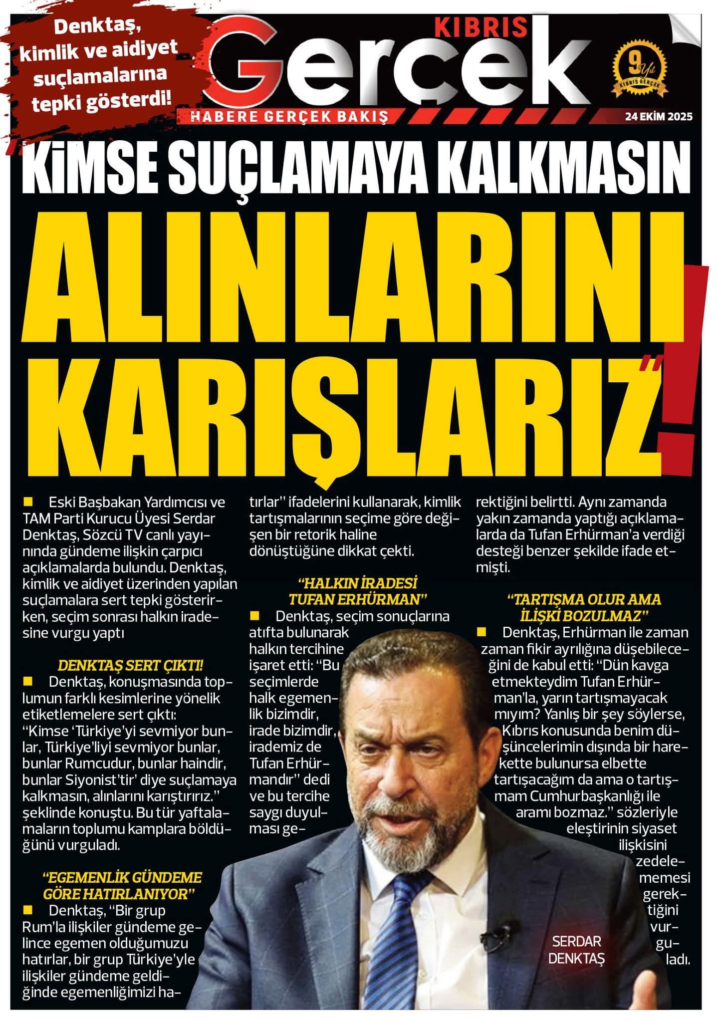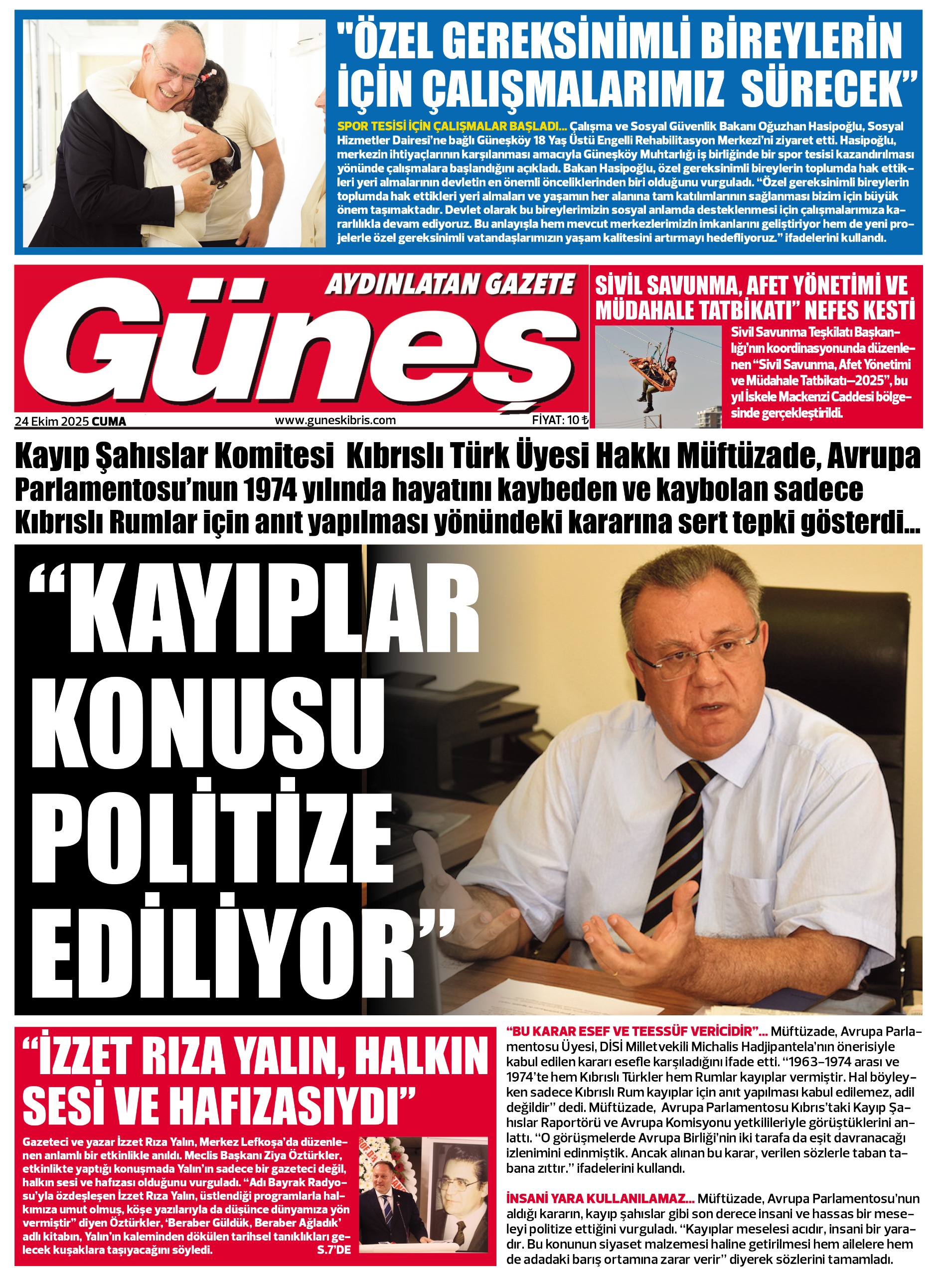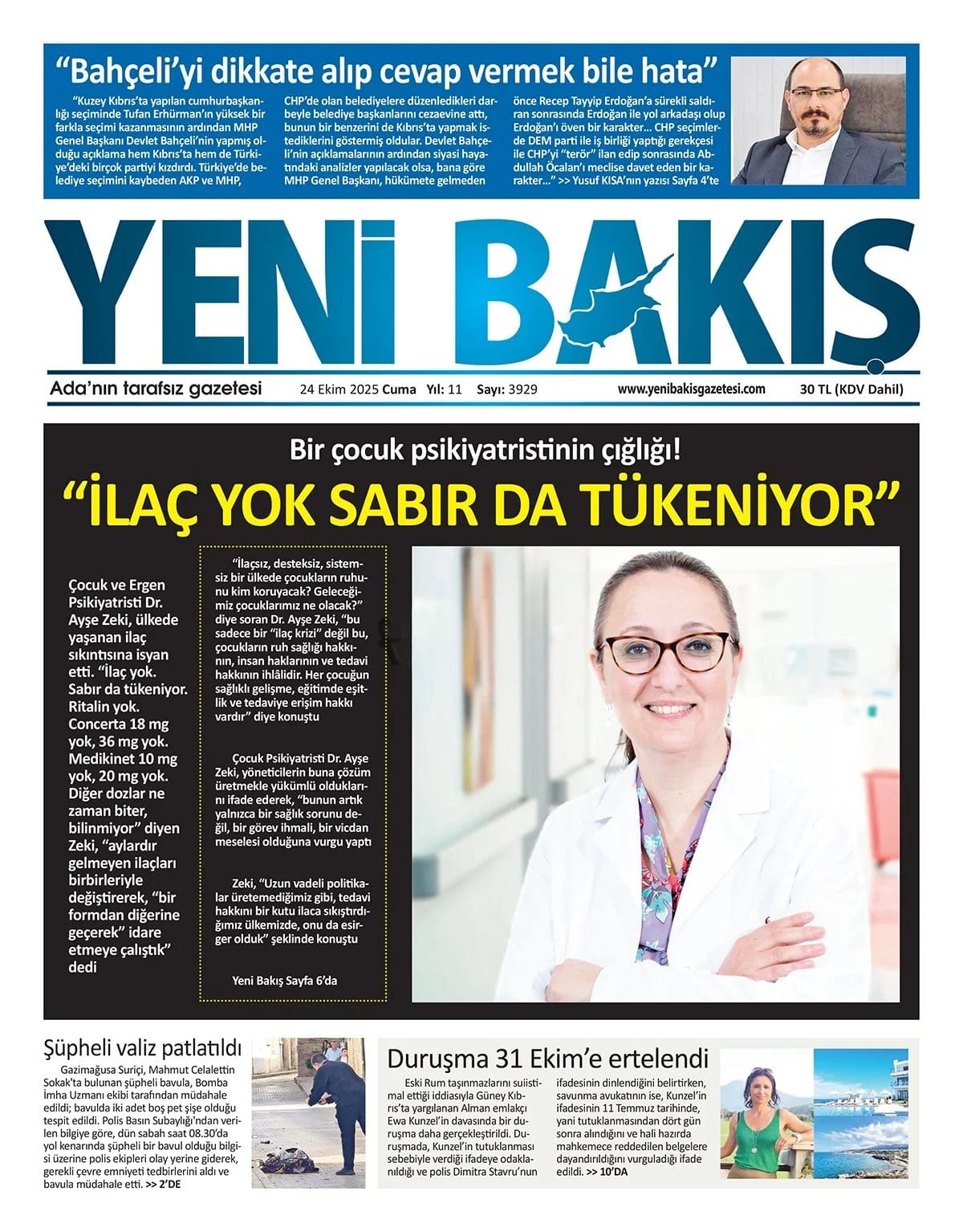 KıbrısGAZETE MANŞETLERİ (24 EKİM 2025)Ekim 24, 2025 9:35 am Paylaş İlgili haberler İLAHİYAT KOLEJİ PROTOKOLÜ'NE MECLİS'TEN ERTELEME Ekim 27, 2025 BAŞIBOŞ BIRAKLAN KÖPEK, YOLDAN GEÇEN KADINI ISIRDI Ekim 27, 2025 GİRNE’DE TRAFİK KAZASI: ALKOLLÜ SÜRÜCÜ TUTUKLANDI Ekim 27, 2025 Cevap bırakın Yanıtı iptal etE-posta adresiniz yayınlanmayacak. Gerekli alanlar * ile işaretlenmişlerdirYorumAd * E-posta * İnternet sitesi Daha sonraki yorumlarımda kullanılması için adım, e-posta adresim ve site adresim bu tarayıcıya kaydedilsin.