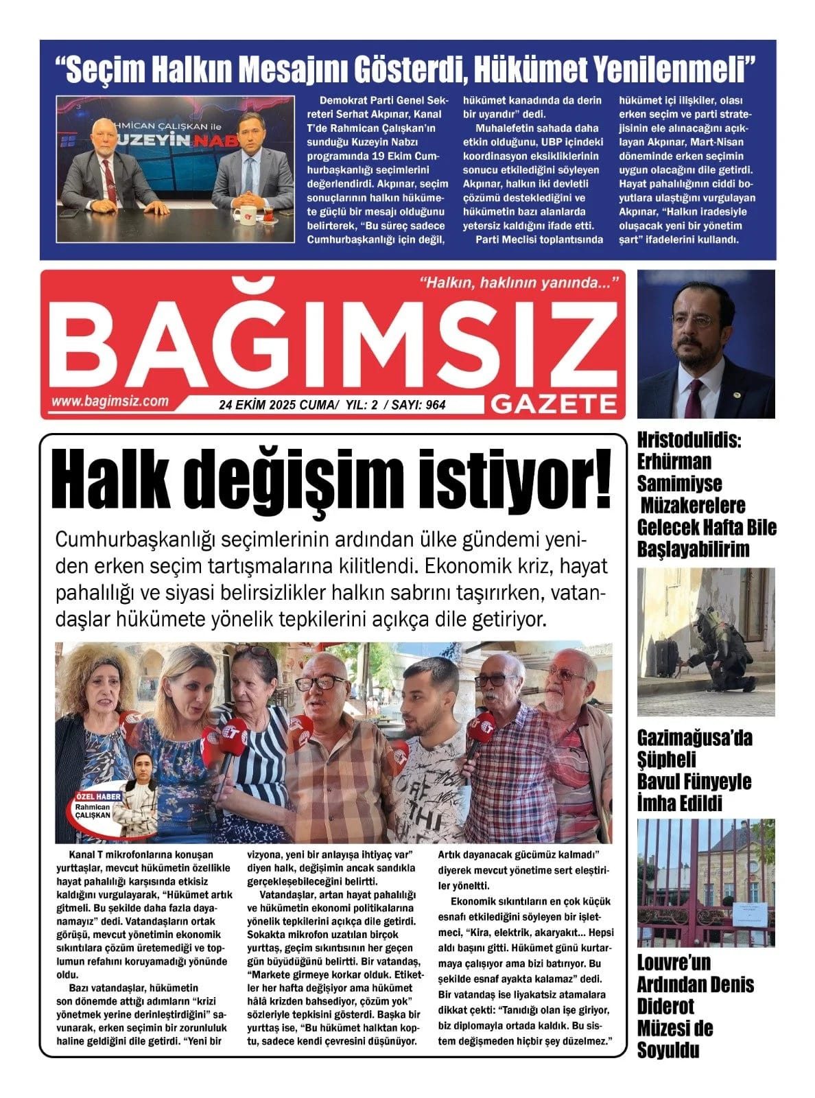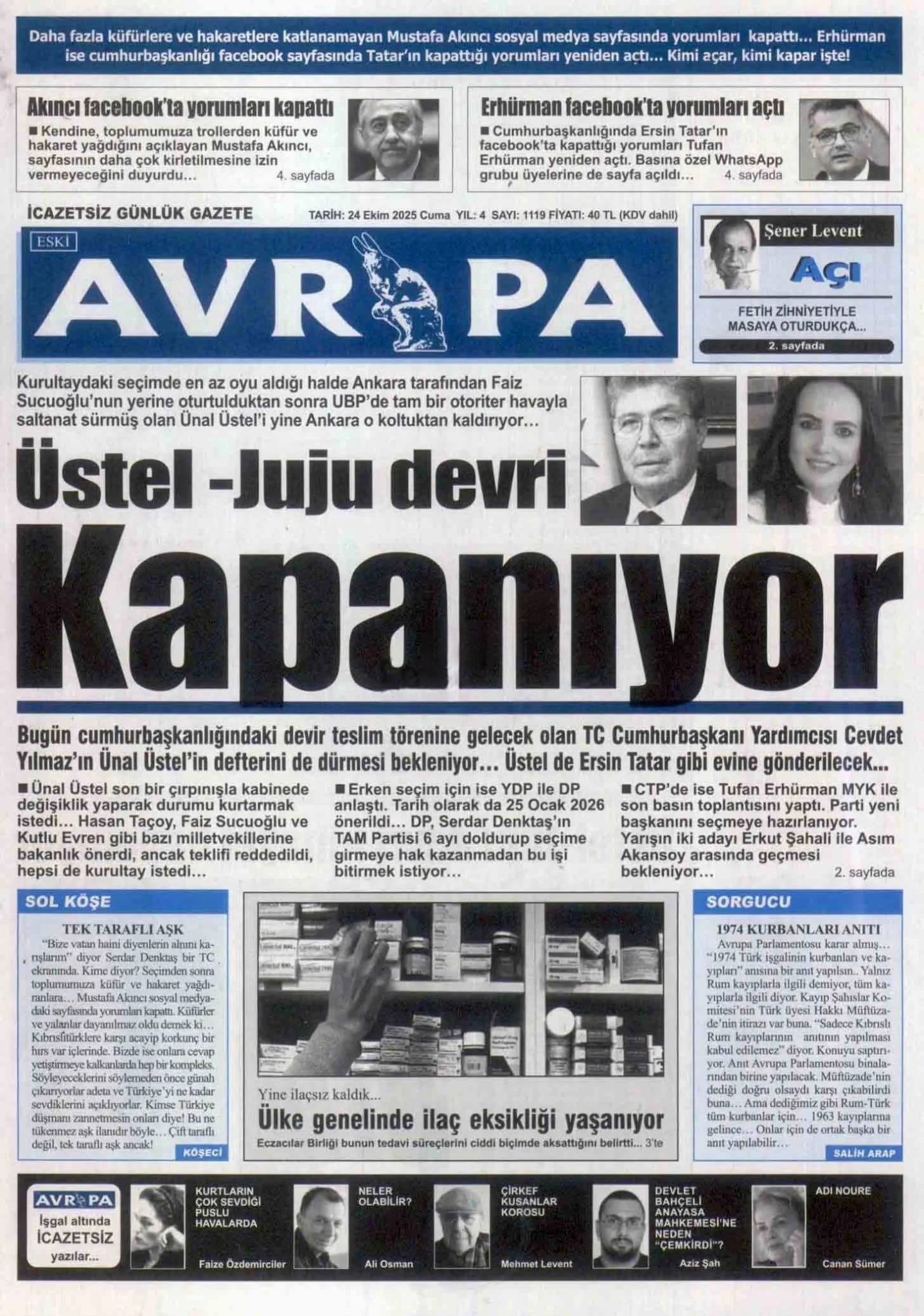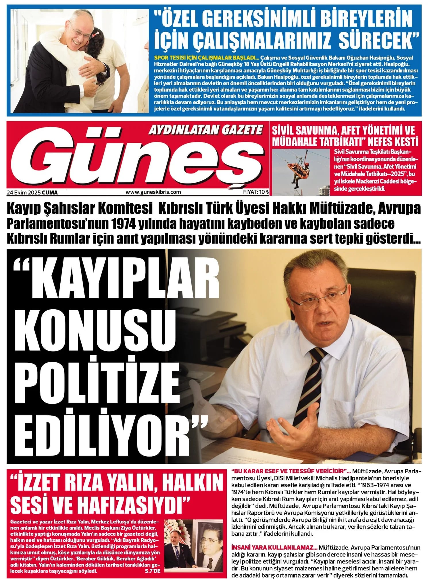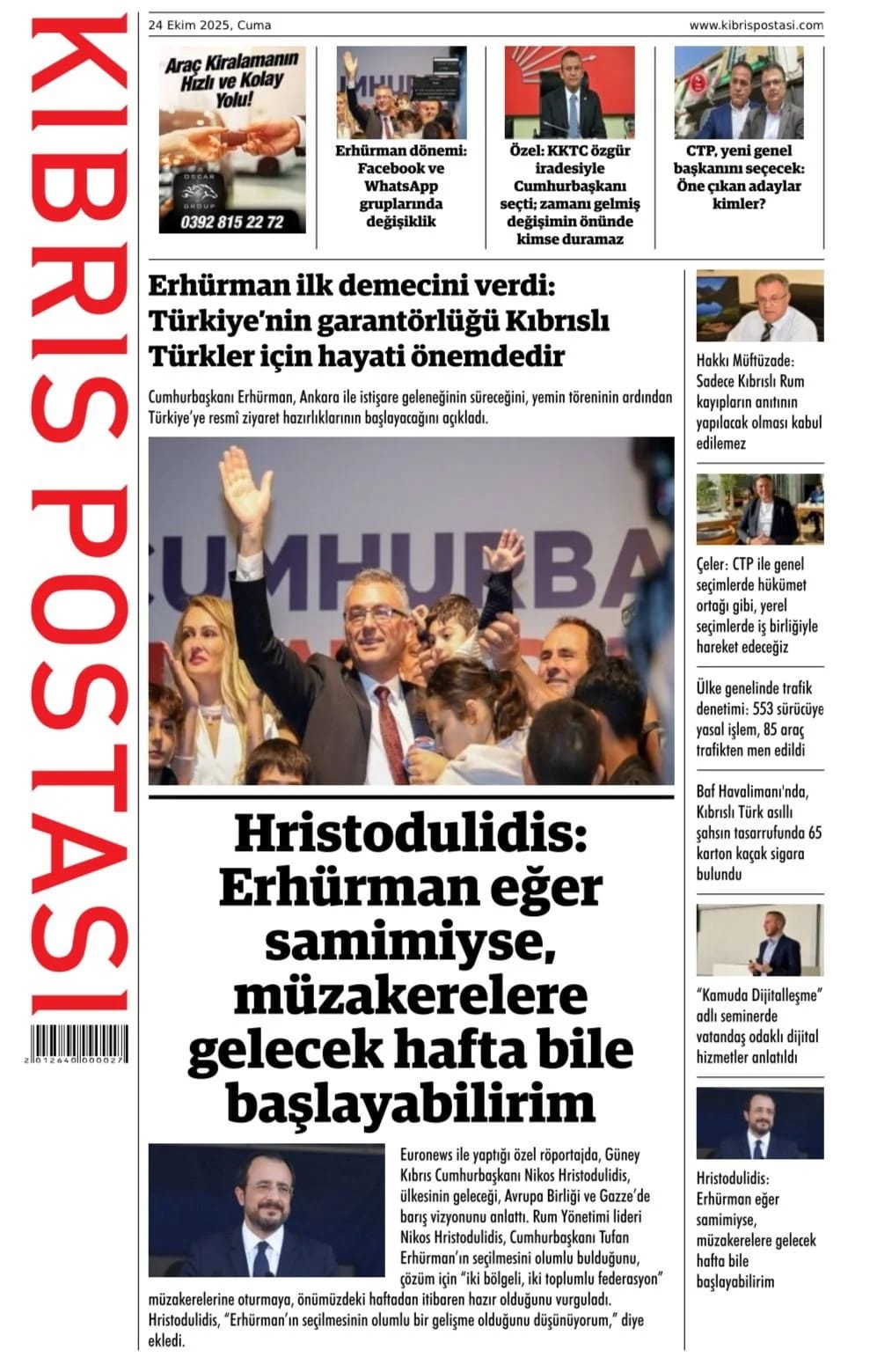 KıbrısGAZETE MANŞETLERİ (24 EKİM 2025)Ekim 24, 2025 9:35 am Paylaş İlgili haberler İLAHİYAT KOLEJİ PROTOKOLÜ'NE MECLİS'TEN ERTELEME Ekim 27, 2025 BAŞIBOŞ BIRAKLAN KÖPEK, YOLDAN GEÇEN KADINI ISIRDI Ekim 27, 2025 GİRNE’DE TRAFİK KAZASI: ALKOLLÜ SÜRÜCÜ TUTUKLANDI Ekim 27, 2025 Cevap bırakın Yanıtı iptal etE-posta adresiniz yayınlanmayacak. Gerekli alanlar * ile işaretlenmişlerdirYorumAd * E-posta * İnternet sitesi Daha sonraki yorumlarımda kullanılması için adım, e-posta adresim ve site adresim bu tarayıcıya kaydedilsin.