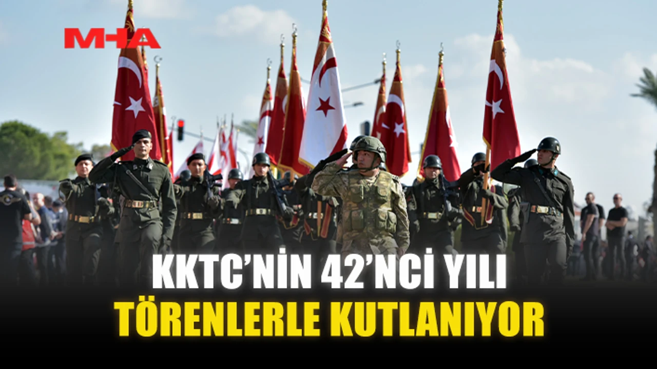 Kıbrıs Türk halkının özgürlük, demokrasi ve kendi kaderini tayin etme azminin en güçlü ifadesi olan Kuzey Kıbrıs Türk Cumhuriyeti’nin kuruluşunun 42’nci yıldönümü, ülke genelinde düzenlenen tören ve etkinliklerle kutlanıyor.