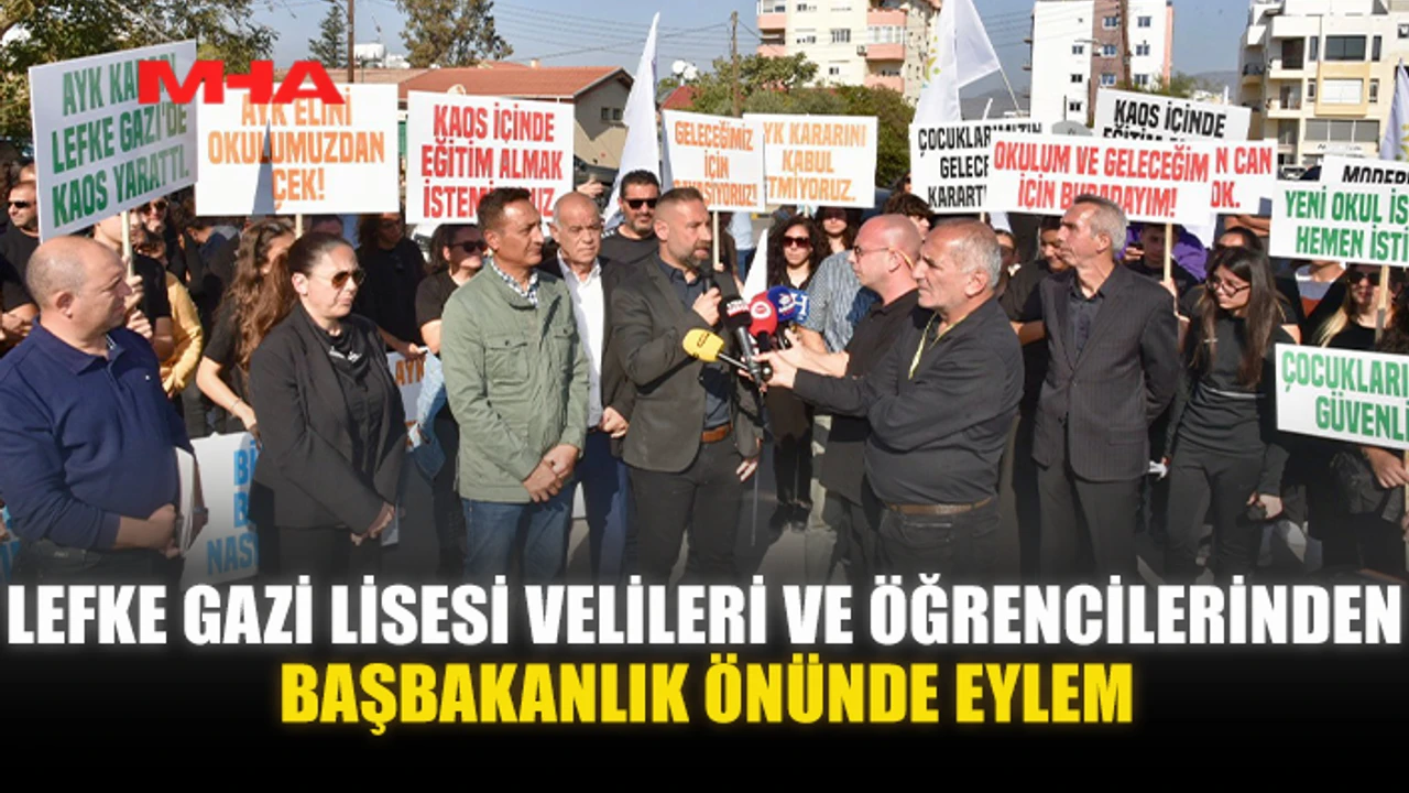 Lefke Gazi Lisesi öğrencileri ve velileri deprem riski taşıyan okul binasında adım atılmadığı gerekçesiyle Başbakanlık önünde eylem yapıyor.