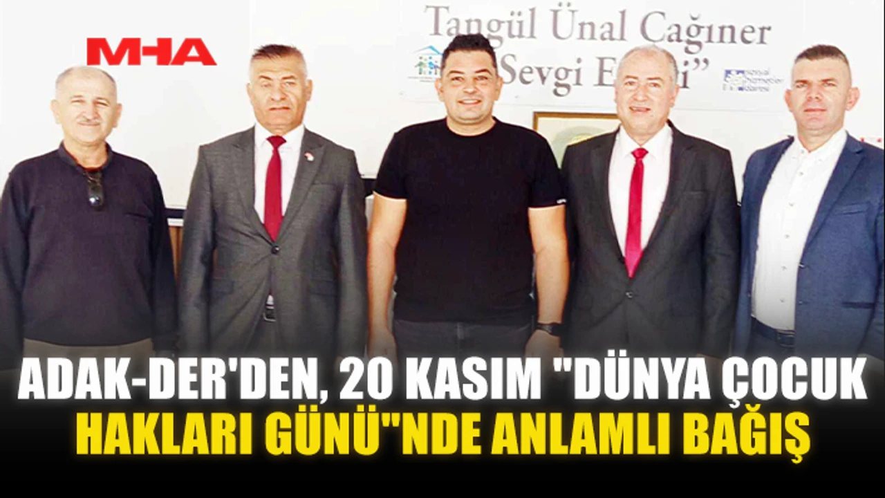 KKTC Adanalılar Dayanışma, Aktivite ve Kültür Derneği(ADAK-DER) Başkanı Mehmet AKTAŞ ve beraberindeki Yönetim Kurulu Üyeleri Cumali YALIN, Cumali KERÇİN ve Muhammet EVRAN KKTC Çalışma ve Sosyal Güvenlik Bakanlığı’na bağlı Sosyal Hizmetler Dairesi himayesinde ki Tangül-Ünal Çağıner Sevgi Evleri’ni, ziyaret ederek, Sorumlu Osman KARAMANLI ile görüş alışverişinde bulunup, yuva hakkında bilgi aldılar. Ayrıca, Birleşmiş Milletler Genel Kurulu tarafından 20 Kasım 1989’da kabul edilen ve Dünya Çocuk Hakları Günü olarak kutlanan bu özel günün anlamına istinaden, Tangül-Ünal Çağıner Sevgi Evleri’nde ki çocukların, yaşam koşullarının iyileştirilmesine katkıda bulunmak amacıyla yuva da yaşayan tüm çocuklara ayakkabı bağışı ve maddi destekte bulundular…