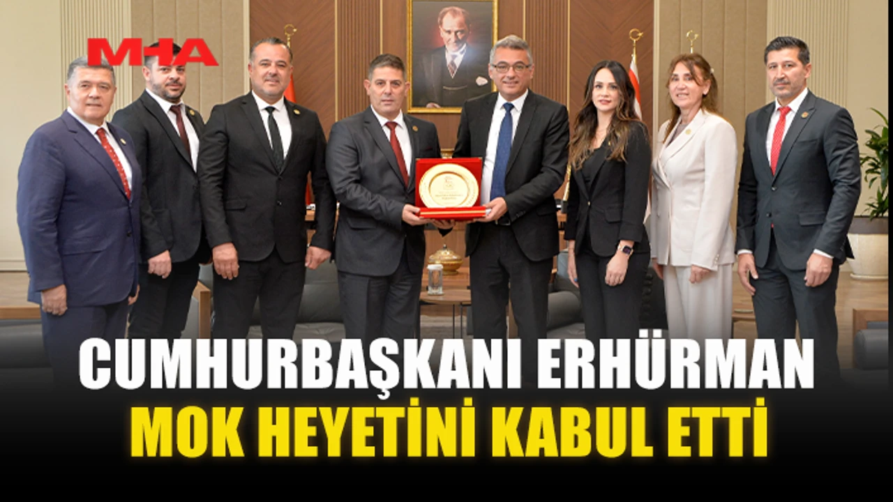 MOK Başkanı Orçun Kamalı, Cumhurbaşkanı görevine seçilen Tufan Erhürman’ı tebrik ederek, ziyaret anısına plaket takdim etti.